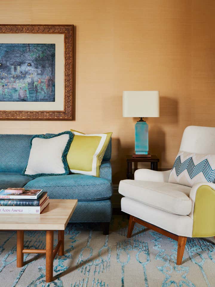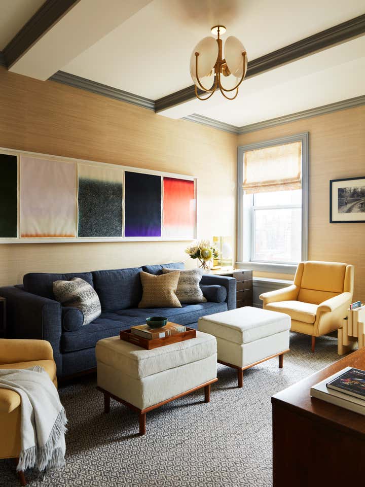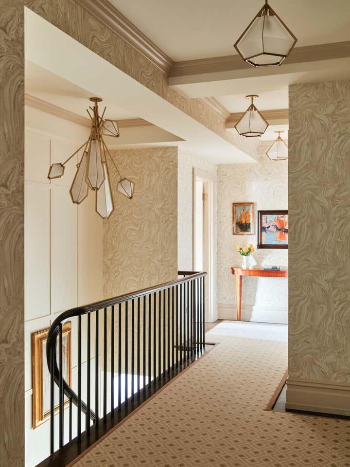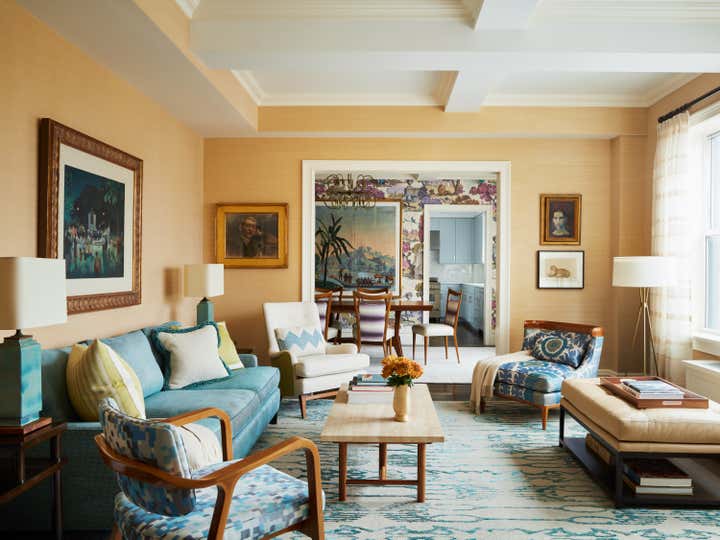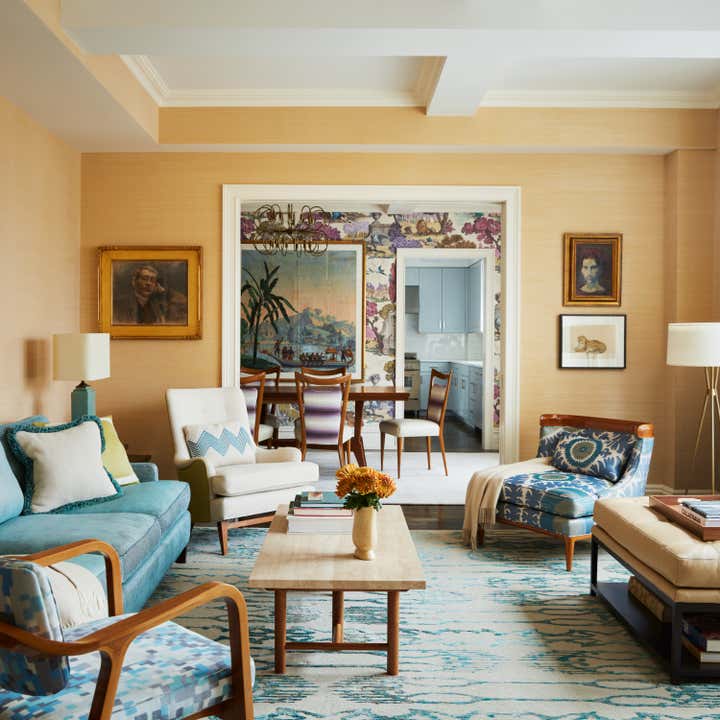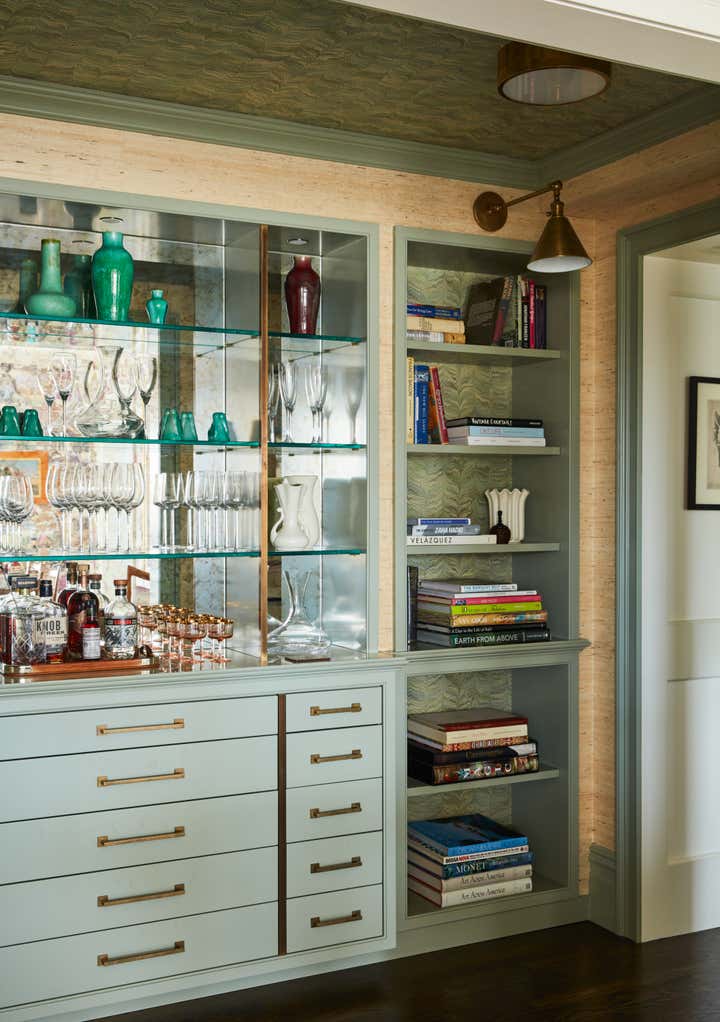 In this Upper West Side apartment, the vibrant personalities of our clients inspired the energy of the design. The client’s own artwork harmonizes against bold wallpaper. Rich, complementary hues create a vista of color from room to room. Creative millwork personalizes the framework of the home, from custom closets that make for functional storage space to a “jewel box” built-in bar that expands entertainment options.