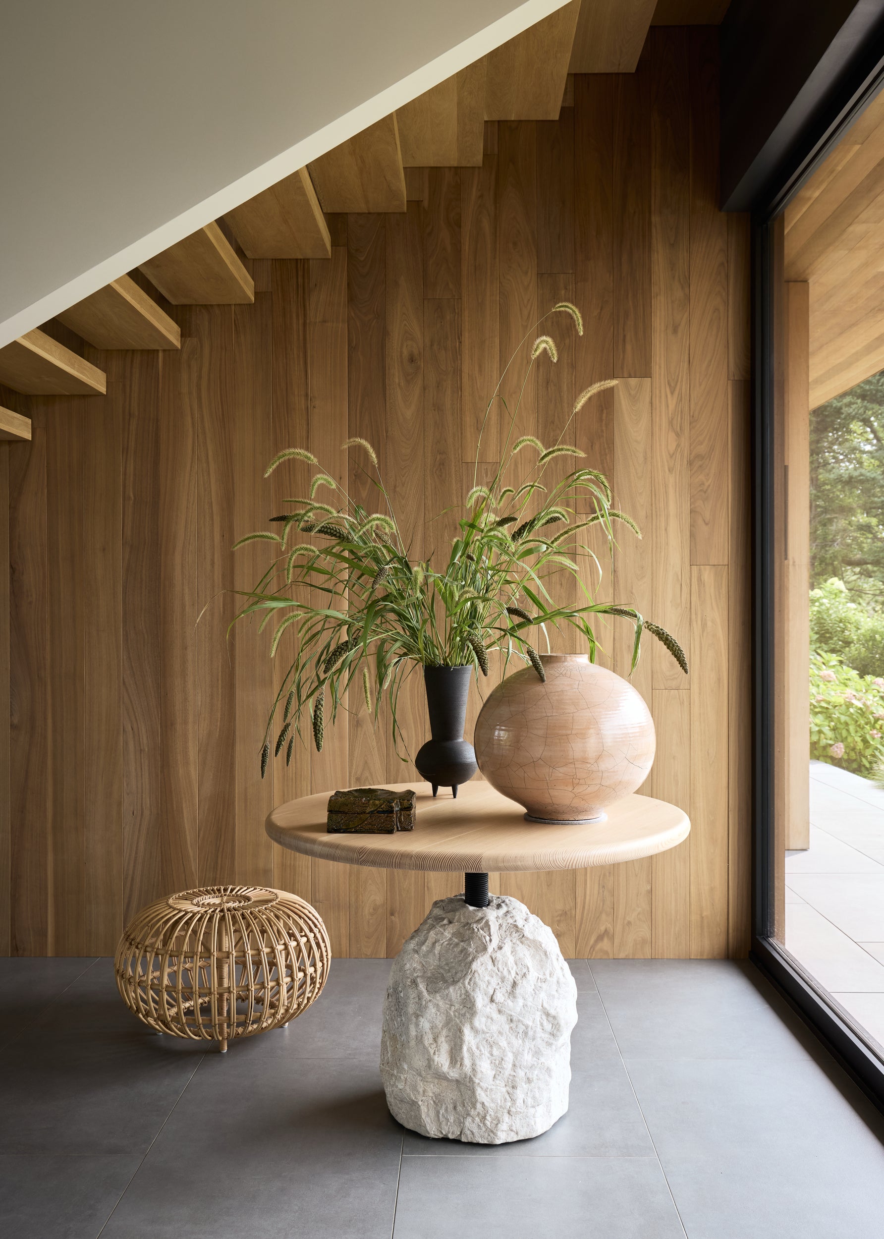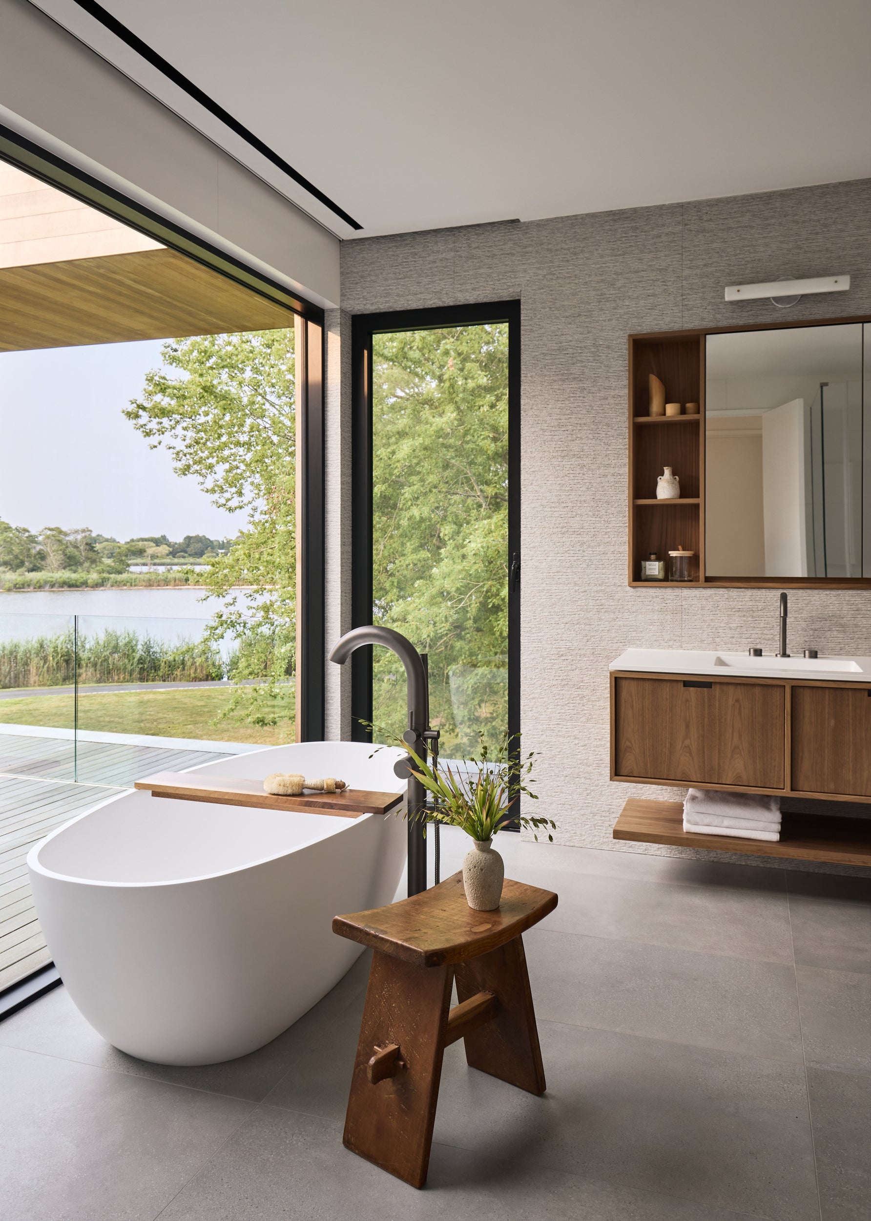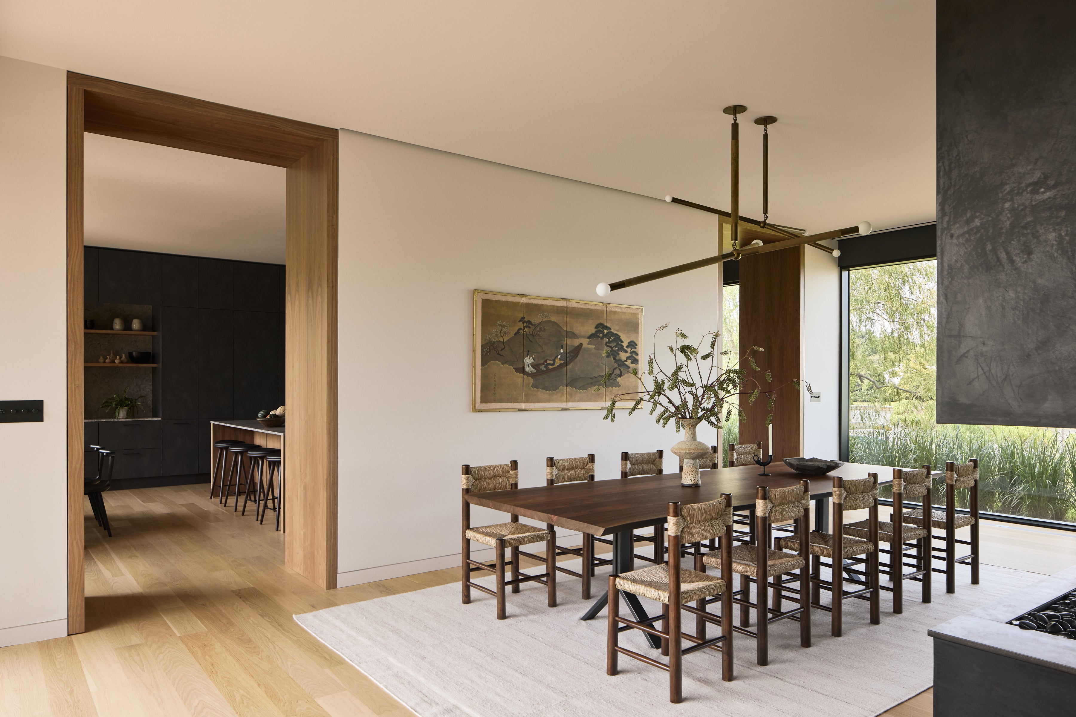 A great collaboration with BMA Architects and Mark Lumley Builders, this home is beautifully situated on Mecox Bay and has a cool Japandi vibe featuring a chic mix of vintage and contemporary pieces
