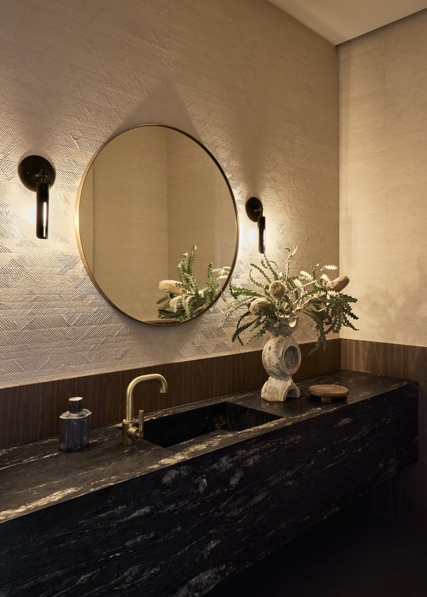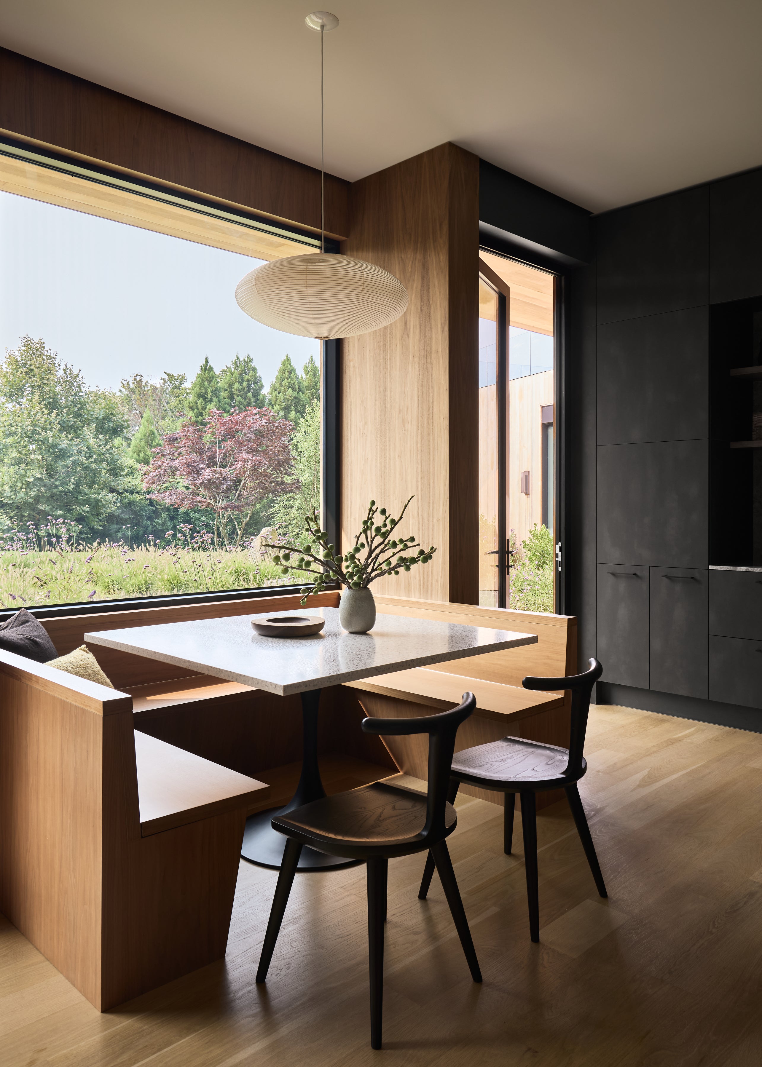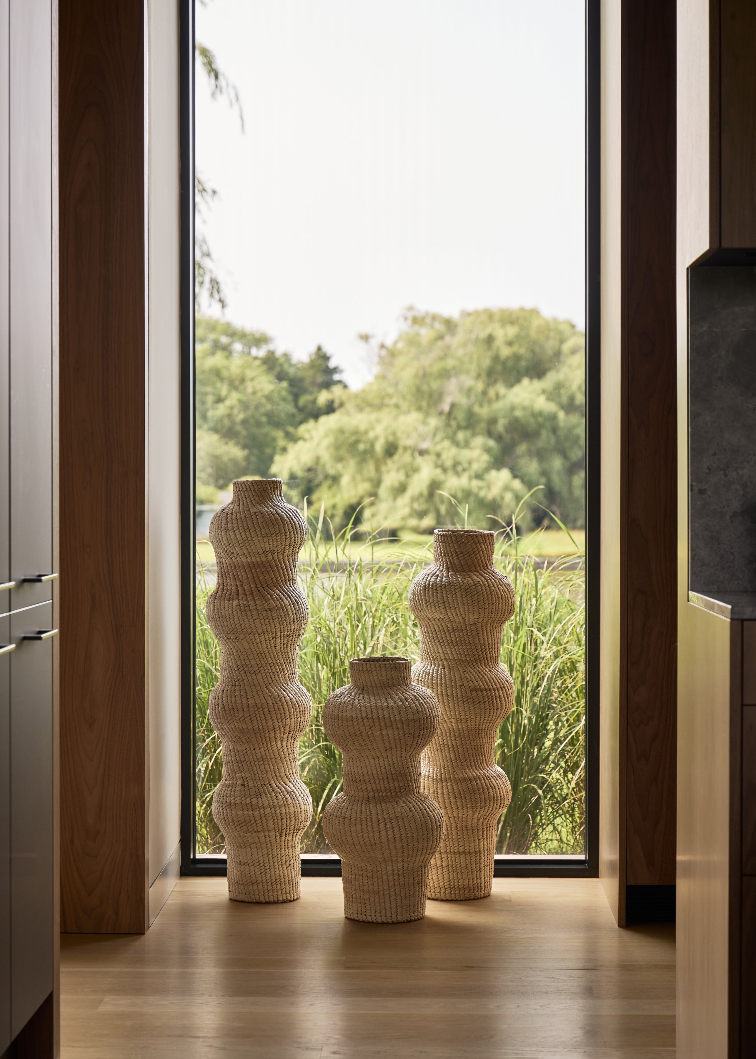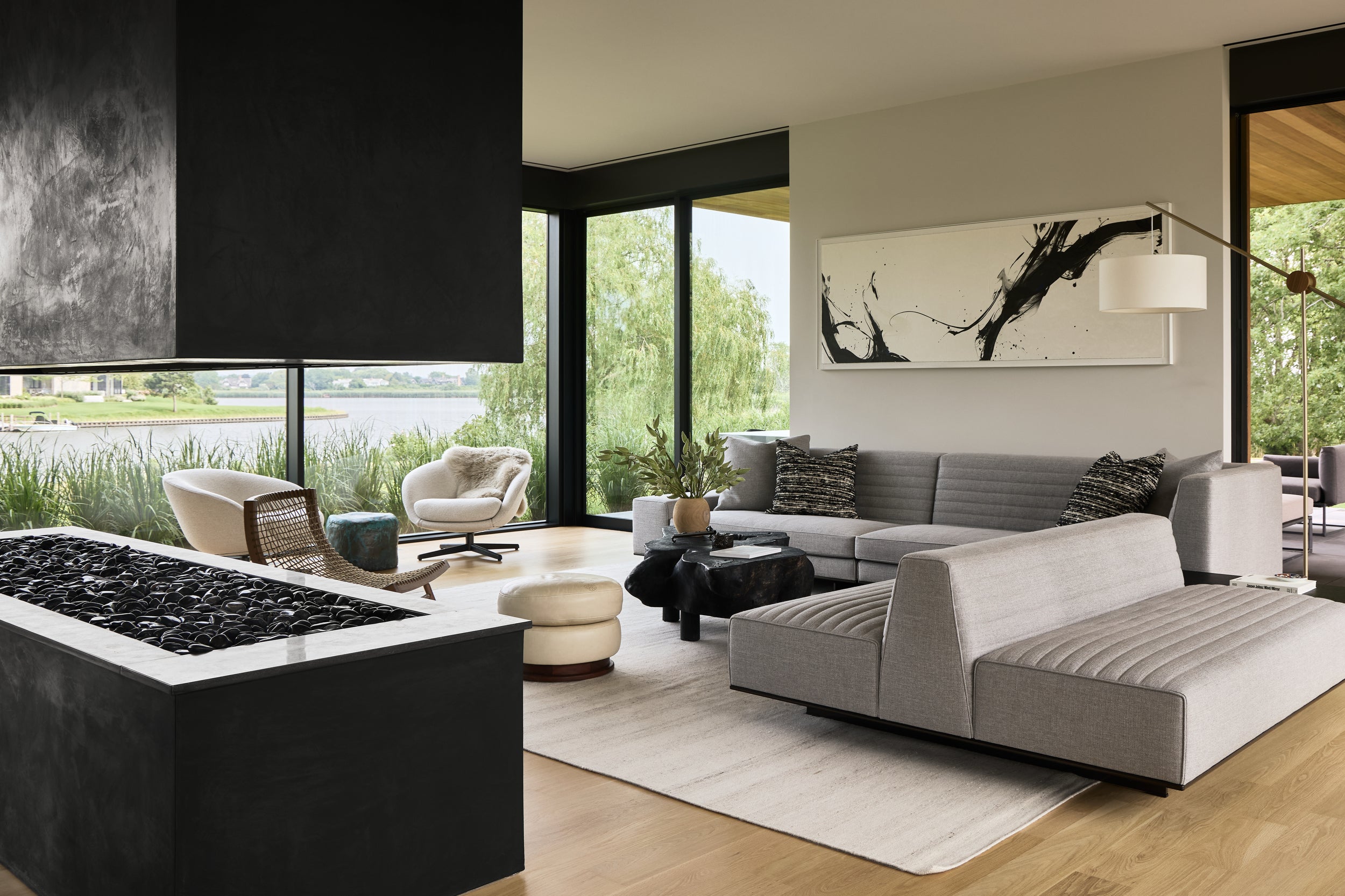 A great collaboration with BMA Architects and Mark Lumley Builders, this home is beautifully situated on Mecox Bay and has a cool Japandi vibe featuring a chic mix of vintage and contemporary pieces