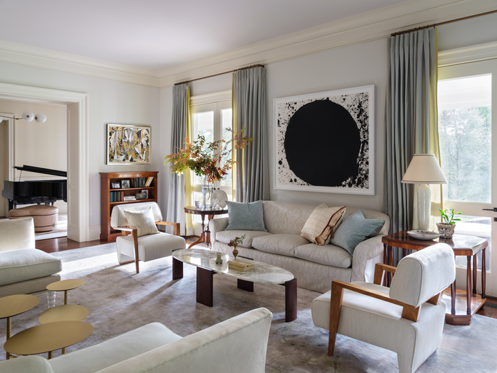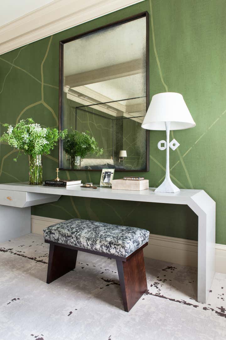This modified shingle-style manse in the heart of Bethesda, Maryland has become an inviting and lively environment for a couple who are equally committed to their family and to the Washington DC community. The house was built in 1995 and was originally decorated in a tasteful, understated manner that the clients had outgrown, and perhaps, never really loved. Traditionalists at heart, but modern in spirit they enjoy both ends of the design spectrum and welcome a dynamic dialog between them. To marry a strong, eclectic aesthetic with an august envelope, Tricia Huntley used nature as a touchstone for all design decisions. Regardless of how dramatic or contemporary an element (the more contemporary the better per the wife), there needed to be a nod, wink -- or even a playful jab at times -- to the organic world. The end result is a home that is charismatic and, at last, beloved.