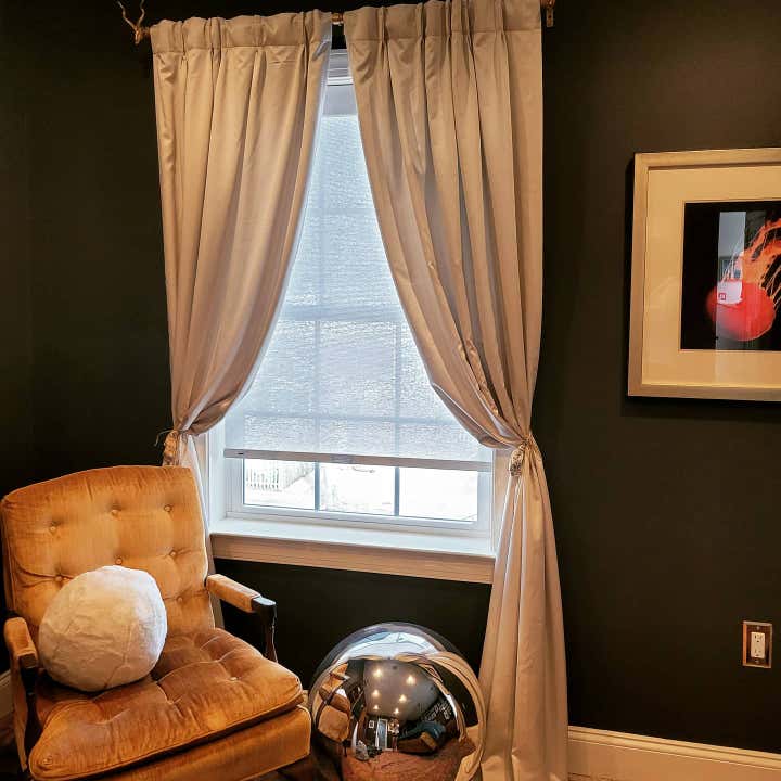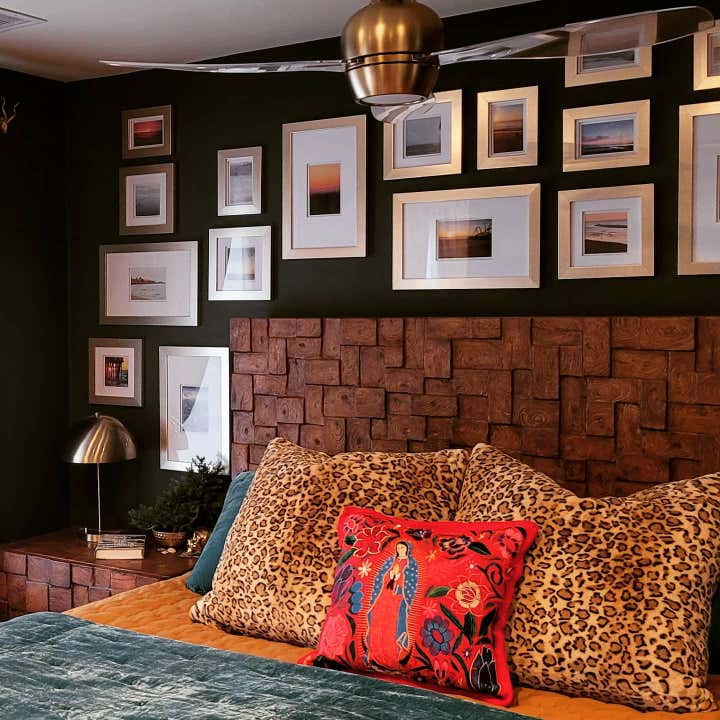 I love dark rooms and this one is a great mix of styles. It's modern, moody and unexpectedly beachy!