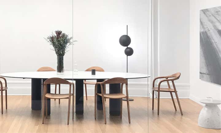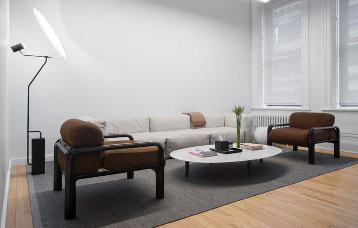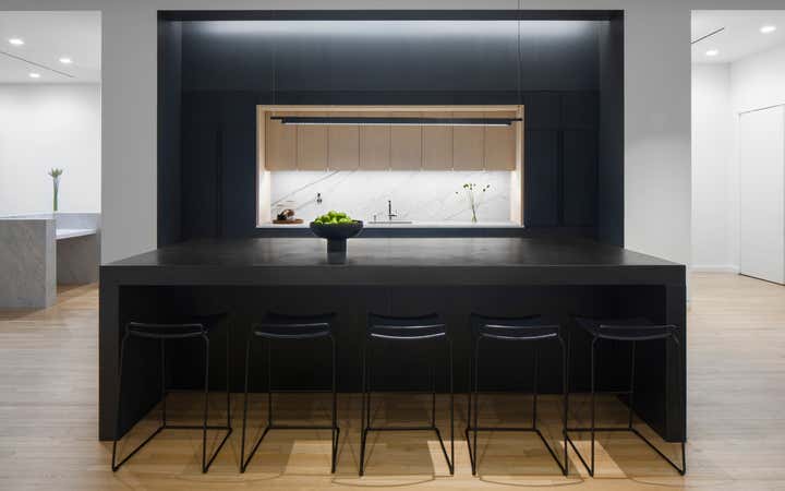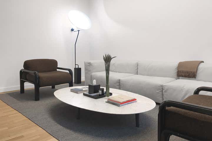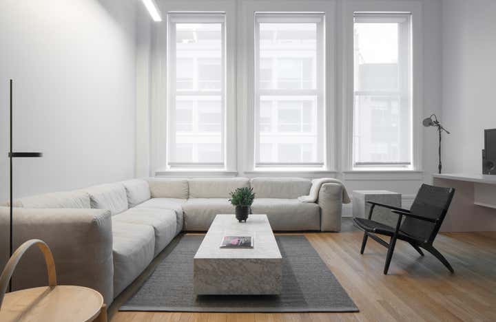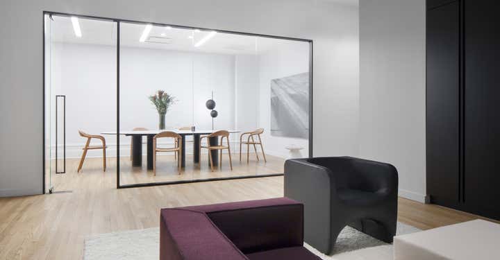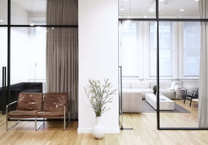 Uli Wagner Design Lab collaborated with the postproduction company 'Modern Post' and designed their office in Soho. With smart space planning and elegant furnishing we turned this Soho loft into an airy and comfortable work environment. While developing a concept for all workstations our main focus was on seating areas for client hosting, specifically targeting design savvy clients in a relaxed but chic atmosphere. The warm seating arrangements in the rooms along the window elevations are reserved for chief editors and clients, while the centrally offered furnishings are rather meant as communal meeting points for clients and staff. Double layered curtains along the glass window-wall allow for different and flexible grades of privacy within the editing studios, while contributing to an overall residential feel. Following the latest trends in work/ life fluidity and offering a less office like work environment.