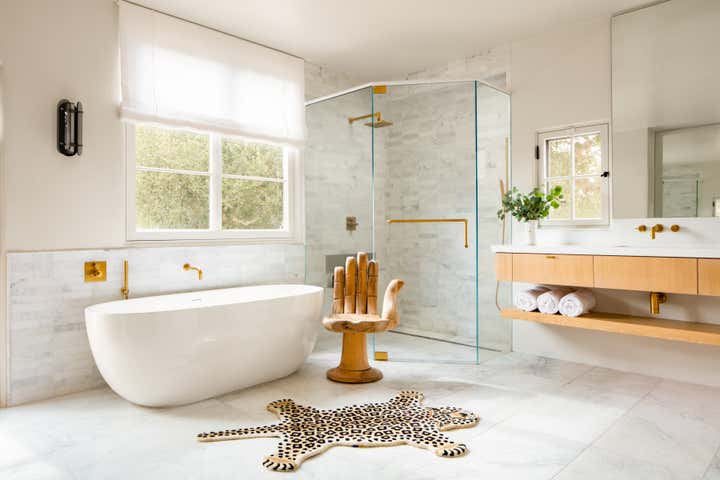 We transformed this 6500 square foot Spanish style ranch into a family home that is vibrant, bespoke and classic, sprinkled with unexpected touches of wild. Our clients - young, daring creatives from Canada - wanted a fun place to host, play and call their forever home. We combined sculptural elements, saturated and moody pigments, and soulful historic materials like oak parquet flooring, with playful pops of pink (our clients favorite color) to create an environment that is timelessly modern and playfully chic. This home is meant to be a space for boundless enjoyment of the everyday.