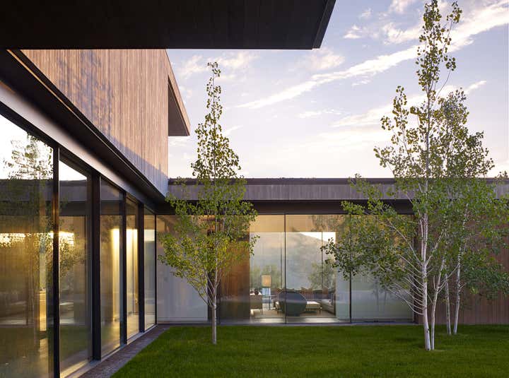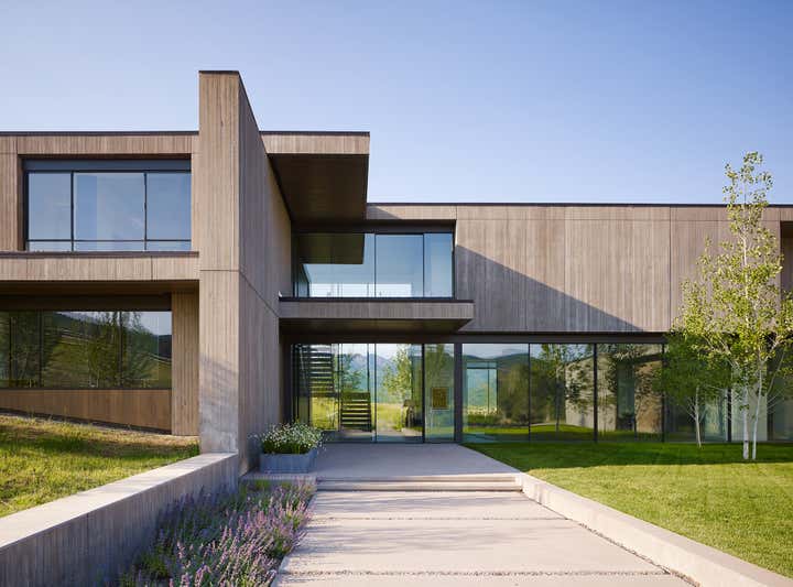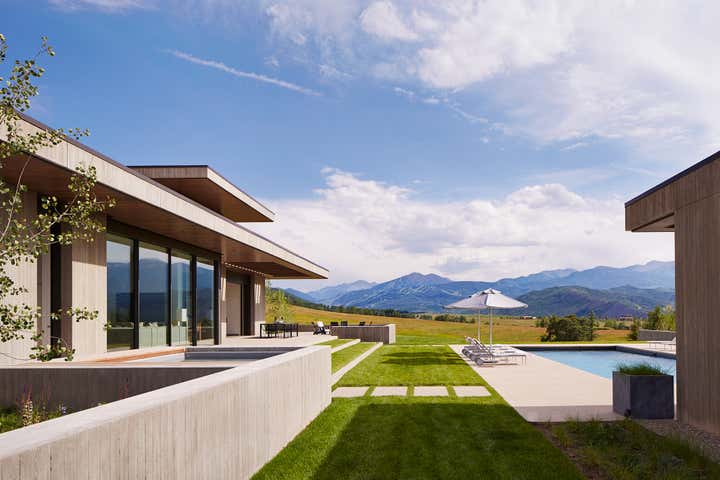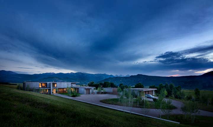 Nestled within eighty-nine acres of Colorado ranch land and surrounded by the majestic Rocky Mountains, this home responds to its site with a sweeping, modern design. We sought to incorporate the landscape into the home, balancing the strength and permanence of the mountains with the elegance and serenity of the wild grasses blanketing the valleys. Expanses of glass wrap the home to introduce light and blur the separation between indoors and out. Inside, a series of sunlit spaces gracefully flow into one another, gradually breaking down the scale of the site. Carefully selected materials make the home warm and welcoming.