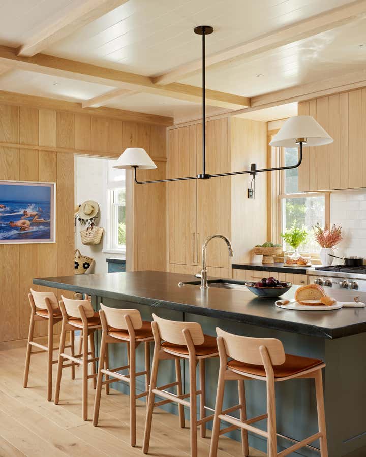 A new shingle style cape home was completed in the summer of 2023 and designed to be the younger sister to a larger home across the street. The front porch was designed for sitting and visiting with passersby, neighbors and family who have all inhabited this small enclave for generations. This is a family home designed for children, adults, slamming screen doors and little bare feet. While the exterior needed to fit within the vernacular of the street, the interior architectural details are a bit cleaner and distinctly fitting for this modern and busy family.