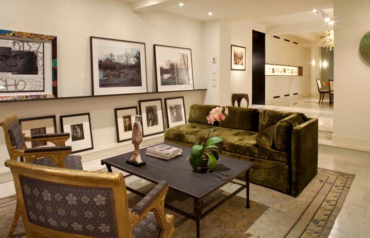 The apartment was created for a couple. Each specialized in a separate area of the art world, while both are art collectors as well. Each had to have there own separate offices but common areas for pleasure as well as business. The apartment is on two levels which adds grace and subtle separations to an otherwise open floor plan.