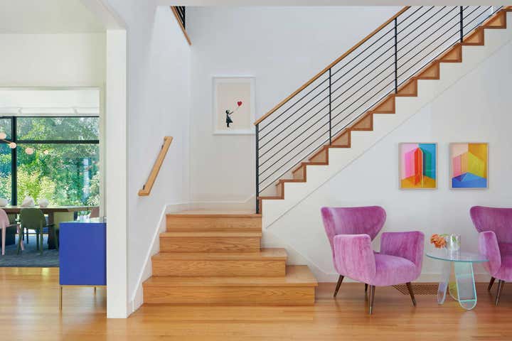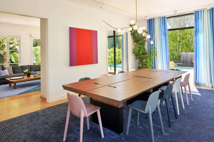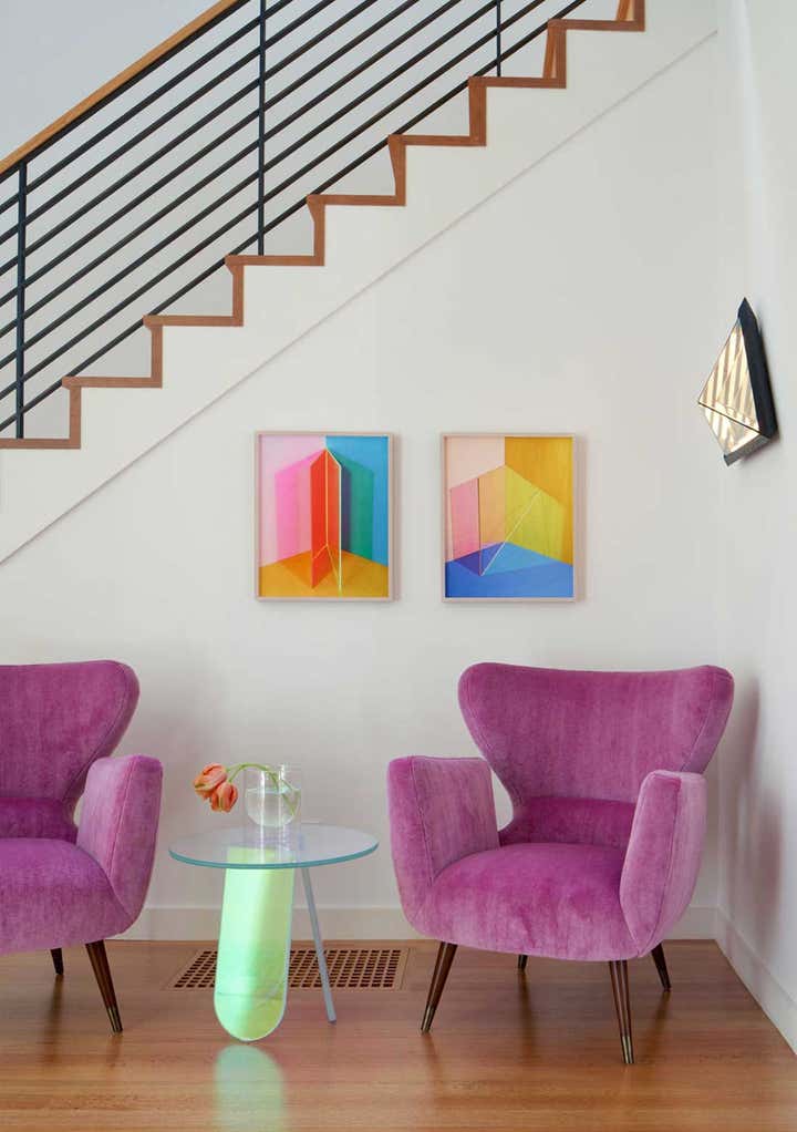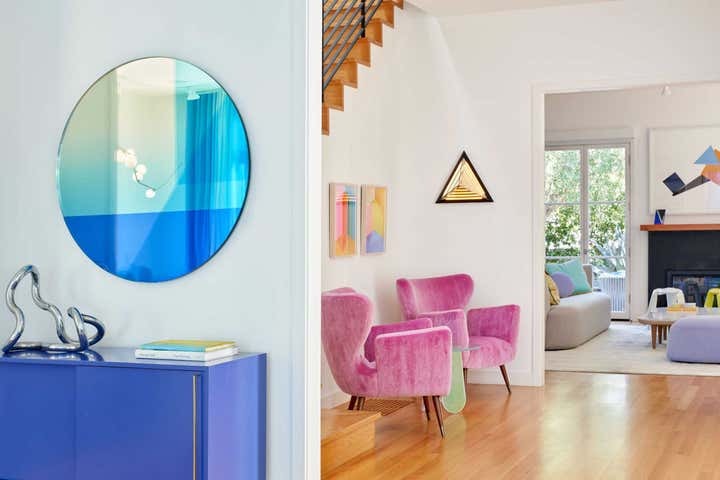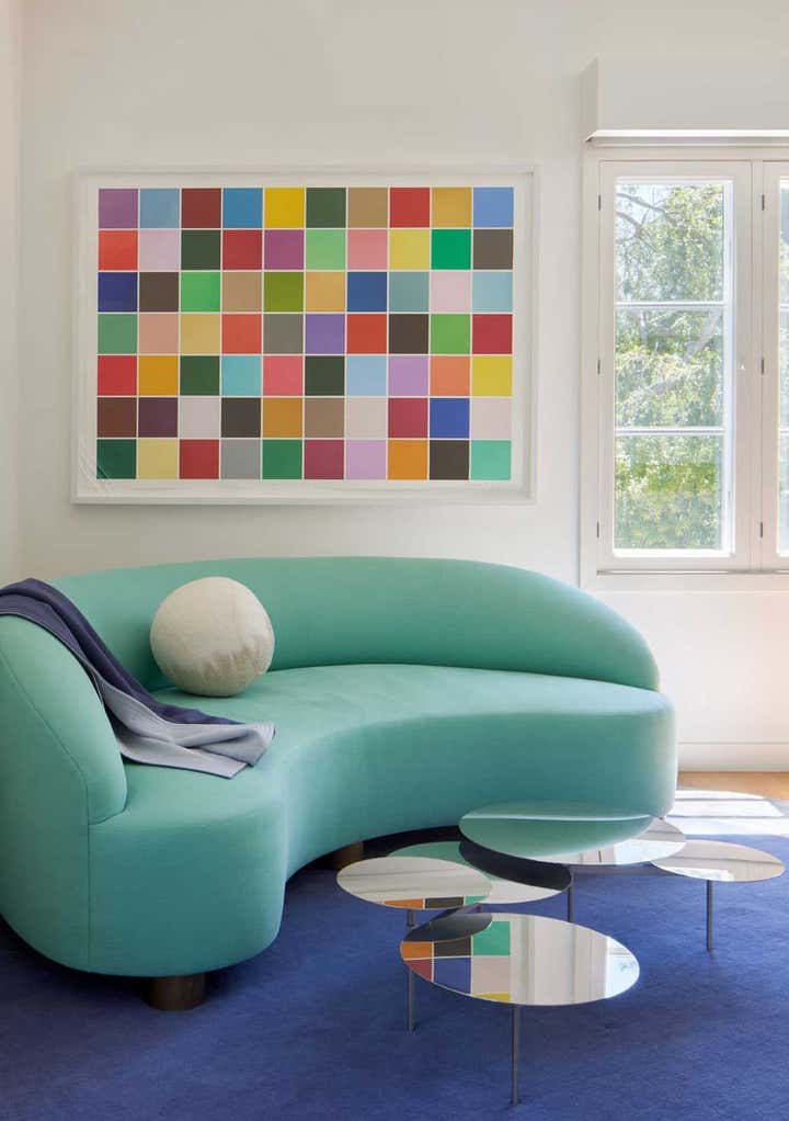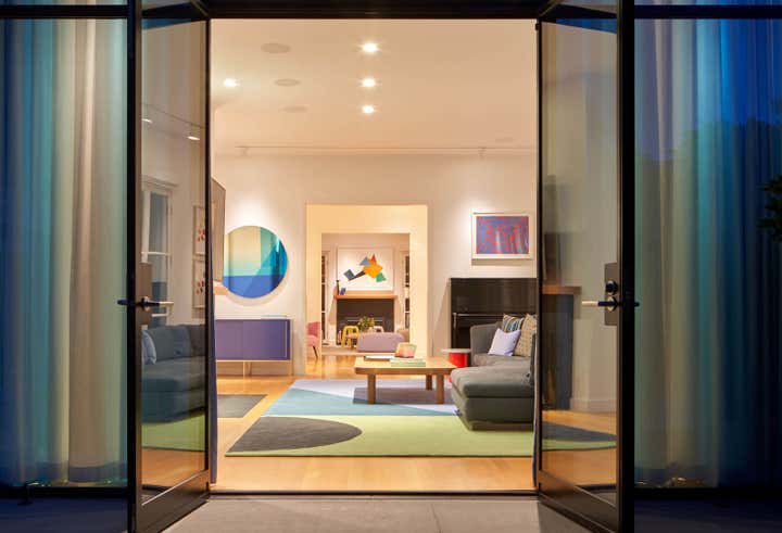 With high ceilings, garden views, and plenty of natural daylight, this timeless 1920’s house offers a dynamic canvas for modern art and life. The home is a dialogue between art and space, and the conversation carries on in bold colors and playful geometries throughout each room.