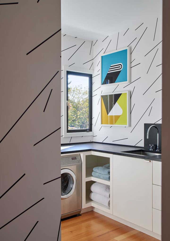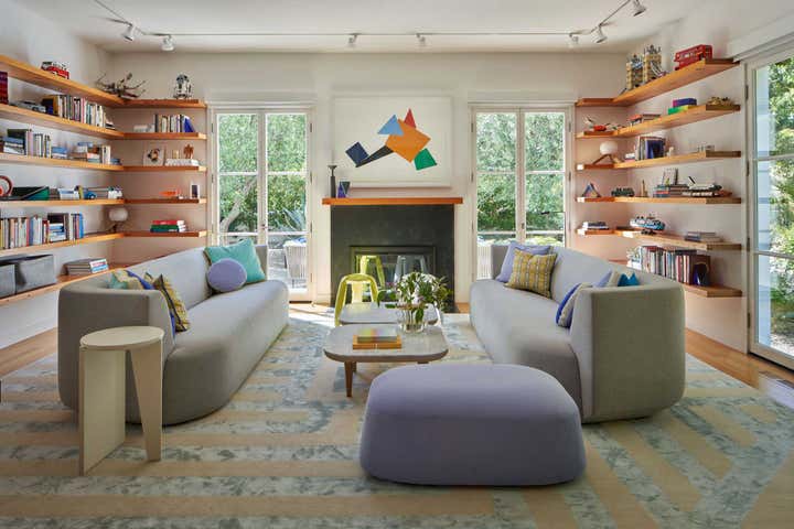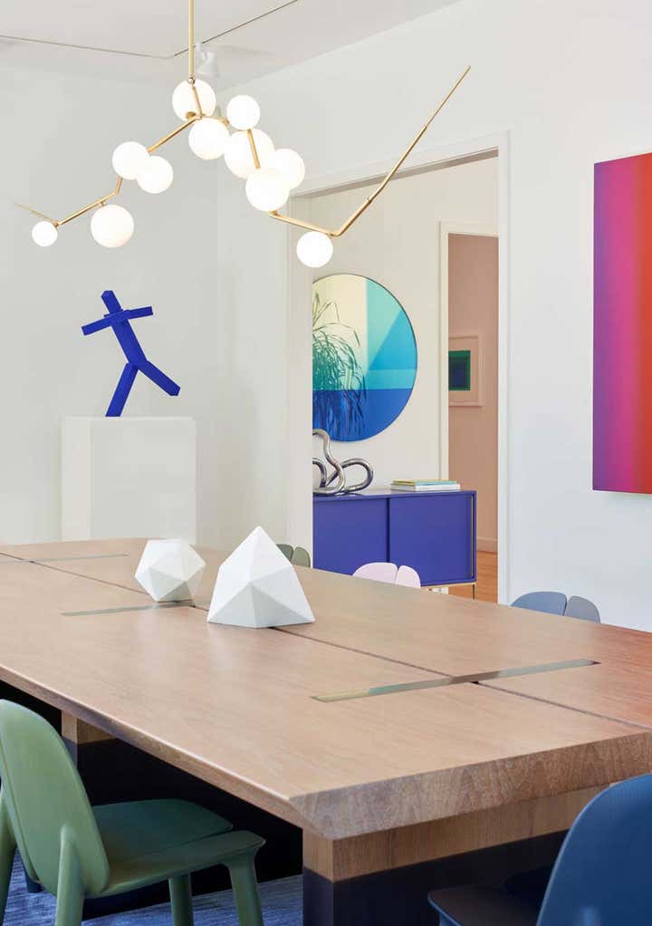 The design gestures are joy-filled in technicolor yet attuned to the everyday needs of the family. Throughout each room, abstract artwork offers moments of silence and pause, cueing time for family and self. Pieces of art, furniture, textiles, and housewares complement the hard-edged abstraction of the sculptures and works on paper. Many pieces were custom designed, taking inspiration from admired artists and designers. The result is a home where art, furniture, and design hang together as a collection of experiences offering both engagement and repose.