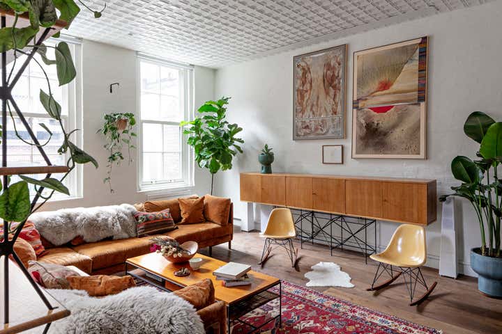 A quintessential NoHo loft space in a retrofitted wagon factory, reinterpreted for modern living. Vintage tin ceilings were stripped down and installed, wide-plank oak floors throughout. Vintage pieces, new pieces, heirlooms scattered throughout.