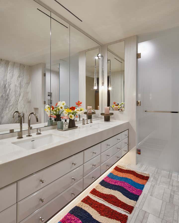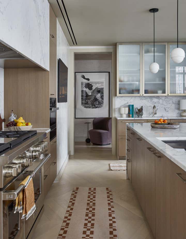 This New York City apartment, designed by Boston-based Koo de Kir Architectural Interiors, is a refined haven tailored for art collectors. Blending modern NYC apartment decor with quiet luxury, the home reflects the firm’s signature approach—warm, layered, and deeply personal. Thoughtful design details, including custom millwork, sculptural lighting, and curated artwork, create a sense of both comfort and sophistication. A mix of vintage and contemporary pieces, natural textures, and playful pattern adds richness to every room.