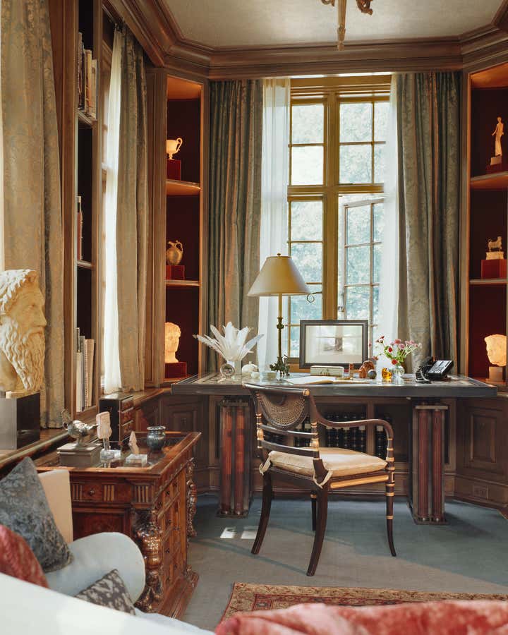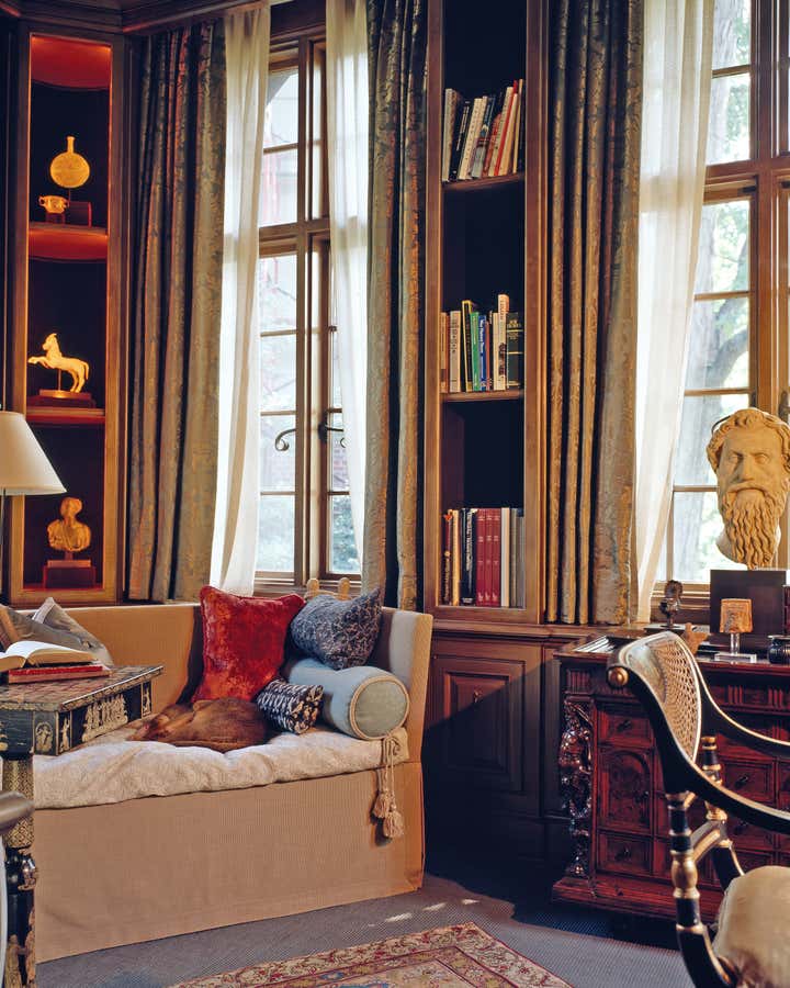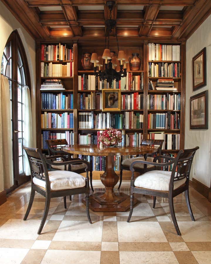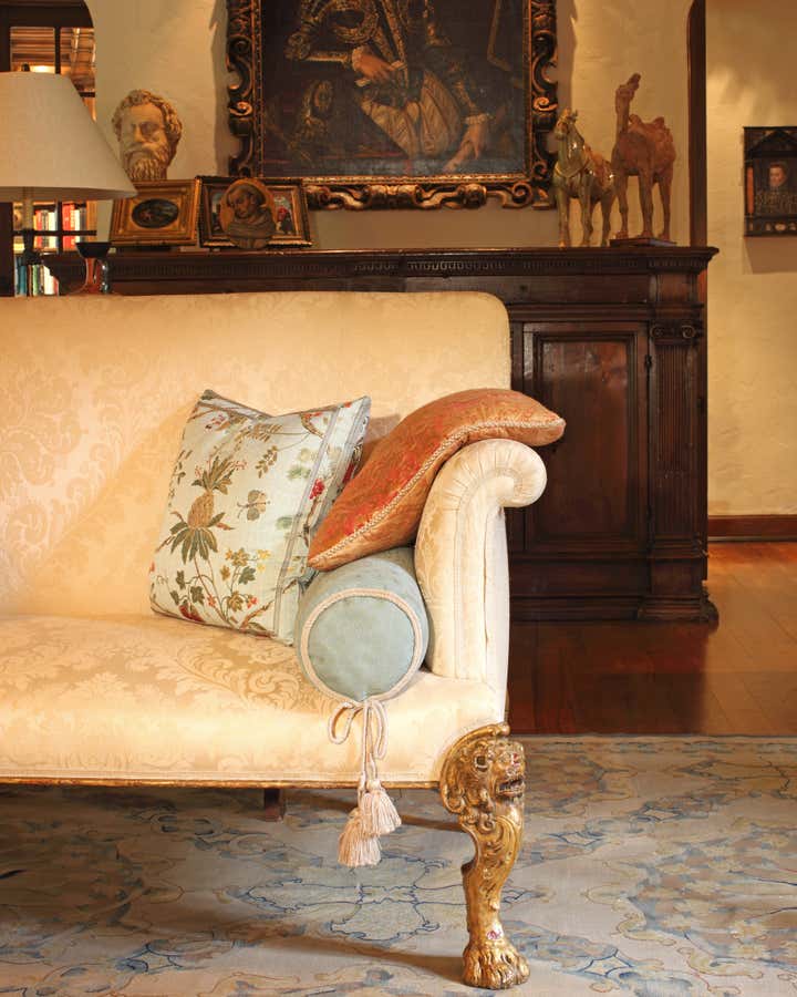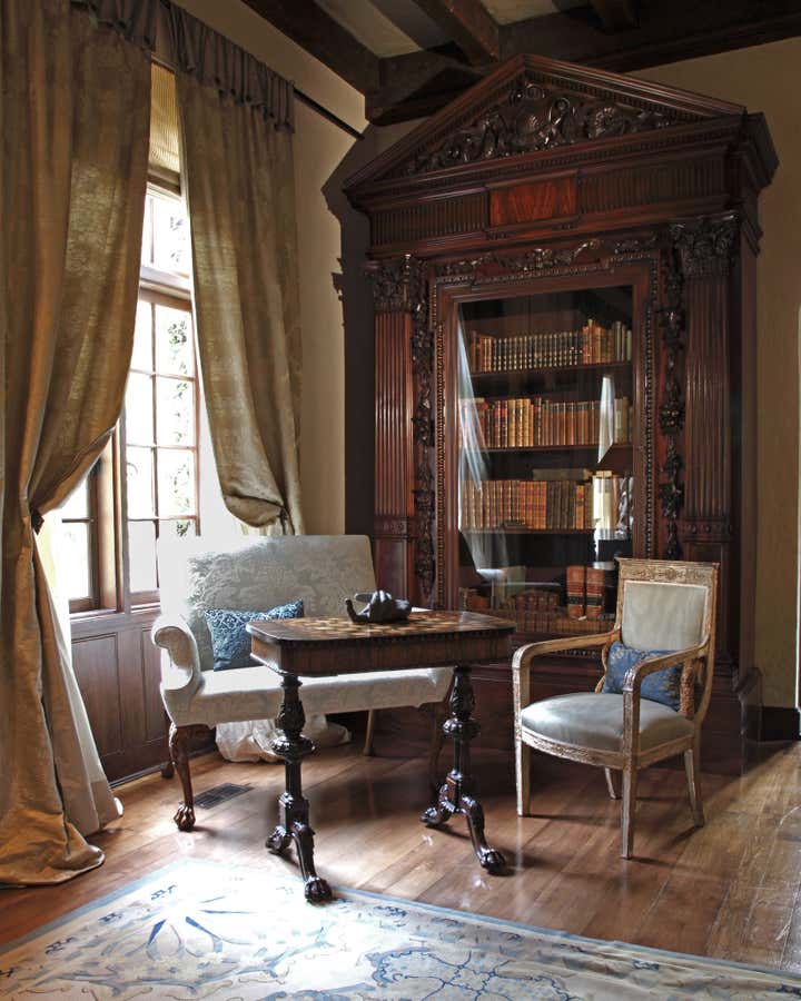 Exploring this sumptuous 1930’s Tudor style residence is to slip into another realm, one that leaves the vicissitudes of modern day living far behind. This timeless sanctuary pays tribute to the owners’ love of reading and learning, a passion that has guided them in building a priceless collection of art, books and antiquities. When the couple decided to look for a larger home in Washington, they engaged Solis Betancourt in locating a suitable property to house their priceless treasures. The task was to respectfully transform the historical dwelling into an environment that would enhance the art collection without making the space feel like a museum.