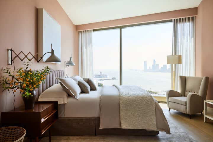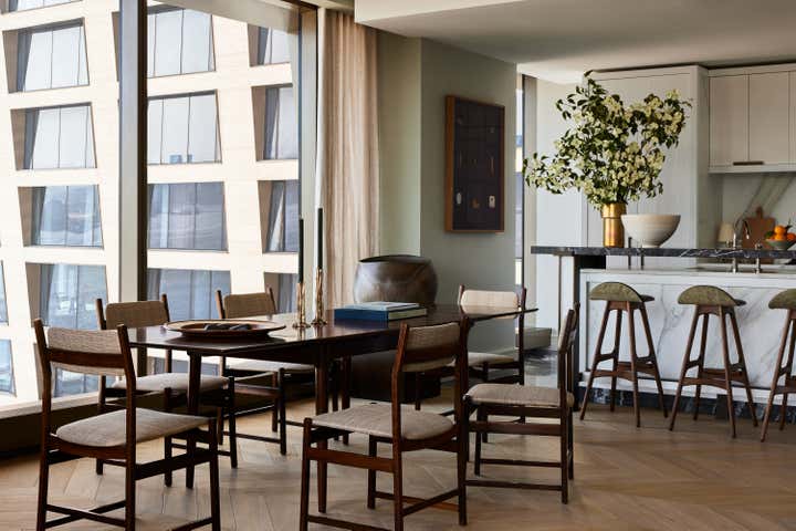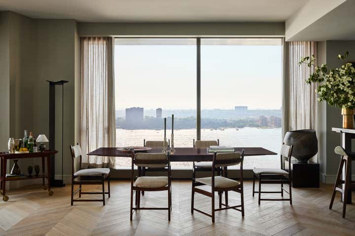 This urban home breathes soft-spoken luxury, as sweeping views of the High Line and Hudson River offer a glistening backdrop. A medley of relaxed materials and textures, modern shapes, and soft, vibrant colors move across the interior. Light bathes each detail. Watery blues, faded greens, and creamy neutrals warmly envelop the rooms. Moments of softness and structure are spoken through organic forms and modernist architecture.