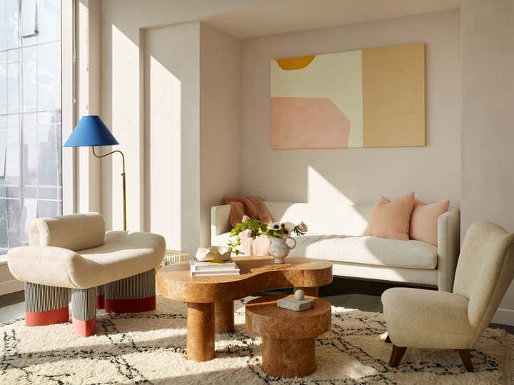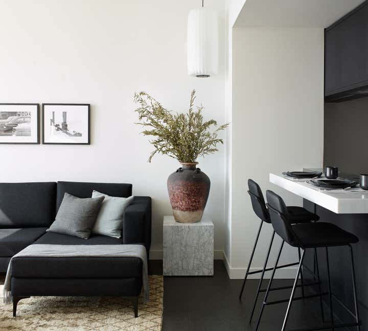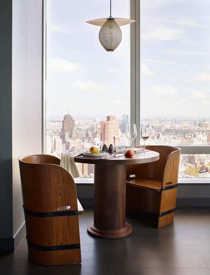 Anna Karlin Studio was commissioned to design 11 model apartments for a Lower East Side residential building, One Manhattan Square. Each apartment tells the story of the unique characters who might someday inhabit the space. The apartments were transformed from white walled units into richly layered homes that are inviting to a range of potential residents. The conceptual briefs come to life through intentional space planning and programming. Floor plans were designed specifically for each character and their unique lifestyle. Customized furnishings and fixtures allowed for optimum use of space. The final layouts are efficient and elegant while including the necessary programmatic elements of a luxury New York residence. Design choices honor the distinct identity of each character while also producing spaces that speak to the vision of Anna Karlin Studio. A blend of vintage, designer classics, and custom furnishings are paired with textural elements in finishes that give each space depth of personality. Curated details throughout, such as art and styling, tie the storyline together. The result is a collection of intimate environments that showcase the range and breadth of an Anna Karlin Studio project.
