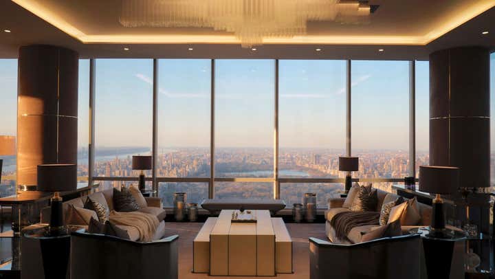Situated on the 64th floor of the iconic ONE57 building, this 3 bedroom lateral New York apartment boasts exceptional panoramic views across Central Park