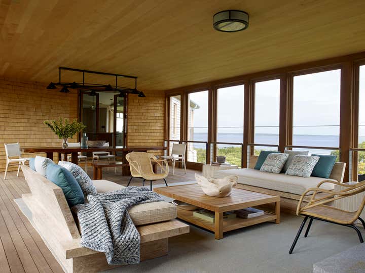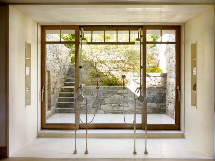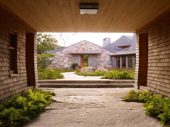 Sitting on a point overlooking the Atlantic - this upside down house is an exercise in restraint. The roof and courtyard allow for bright public rooms above. The bedrooms below are private and cool with their own discreet access to the landscape.