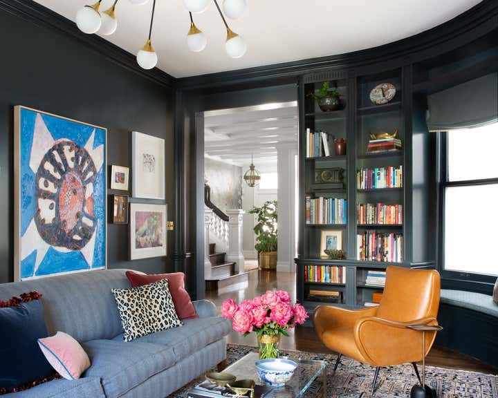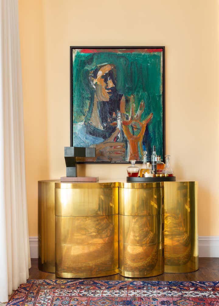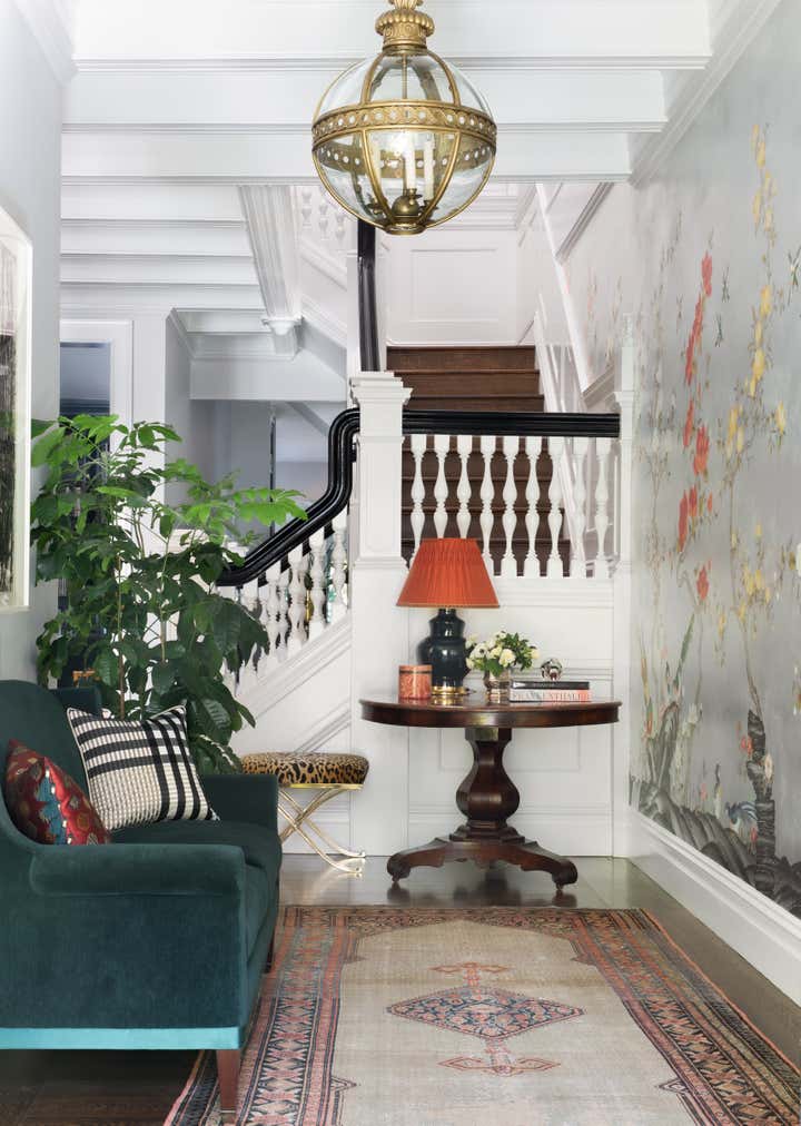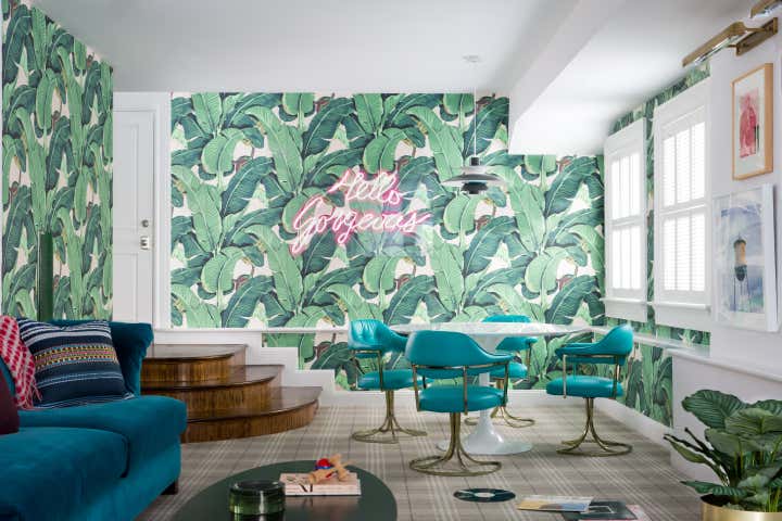 This project thrives on the dynamic interplay between traditional and modern styles. Within the classic townhouse, the interior honors architectural details while embracing an eclectic decor—vibrant layered rugs, custom wall treatments, neon artwork, and vintage furniture—creating a warm, inviting space that perfectly suits our adventurous clients, who are passionate about color and modern art.