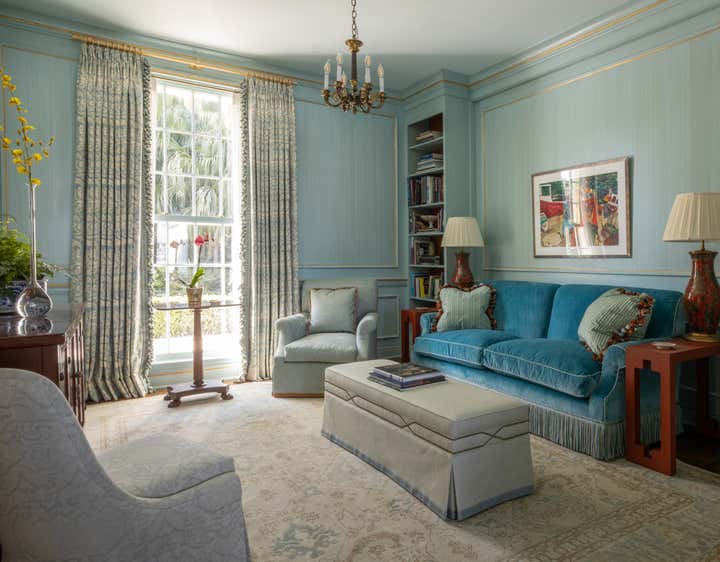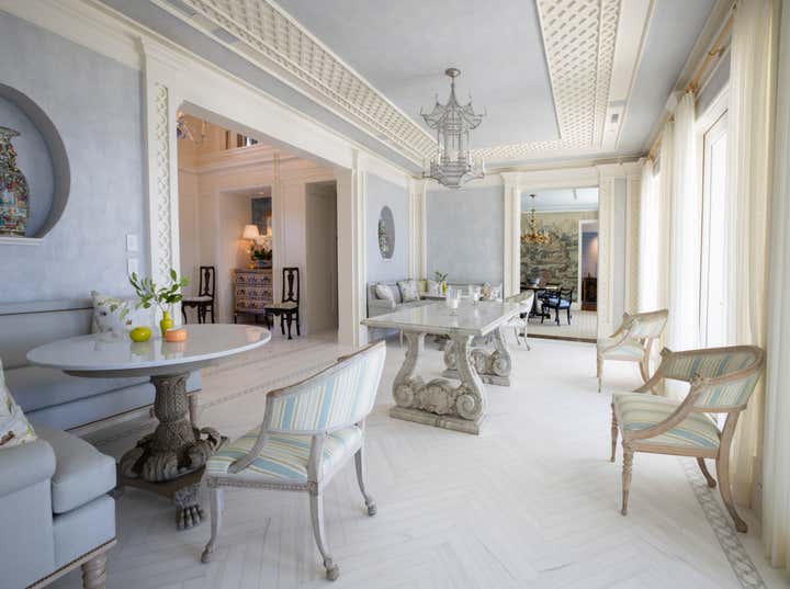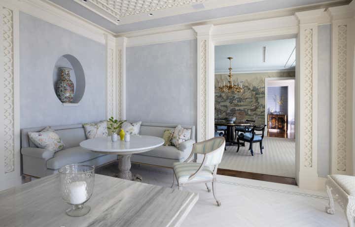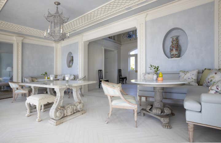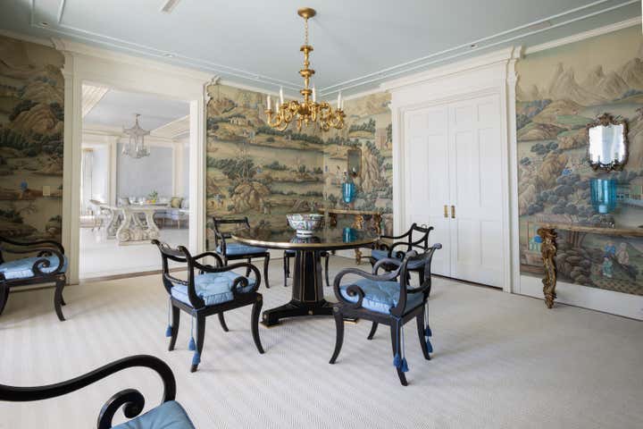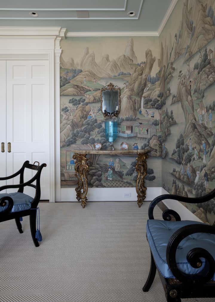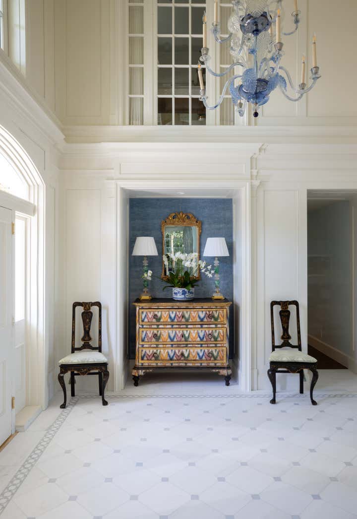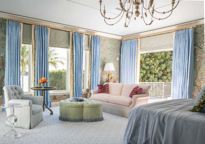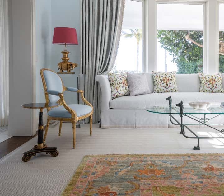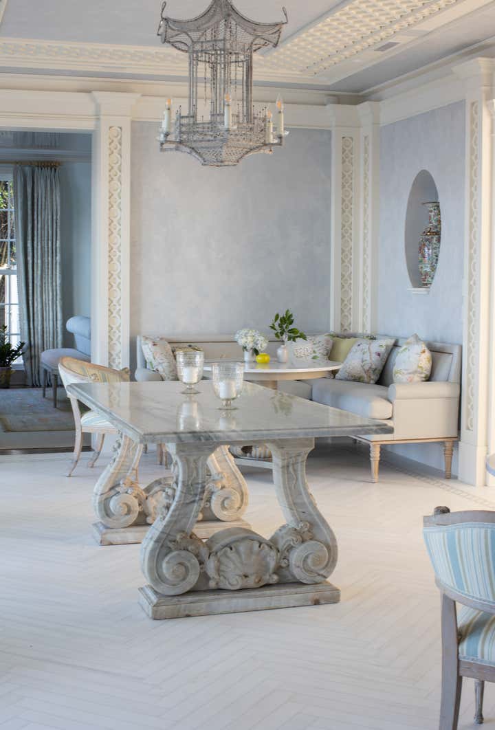 We have done a previous home for the client and for this house, the request was for something fabulous with plenty of color and fine antiques. We combined the Palm Beach pop of color with the sophistication of European antiques, decorative finishes, and sumptuous textiles.