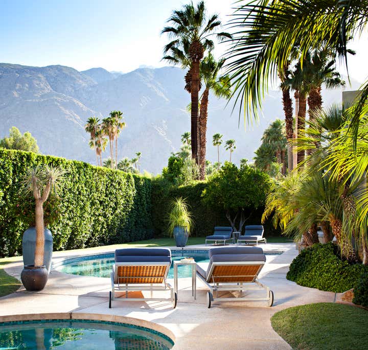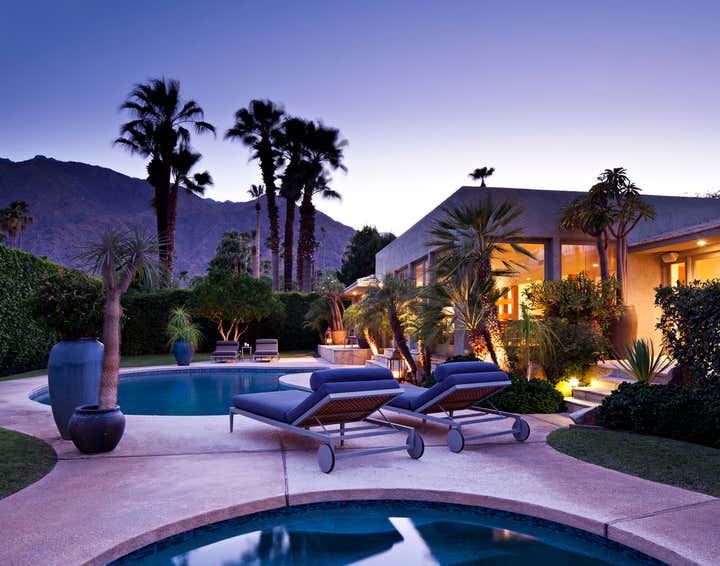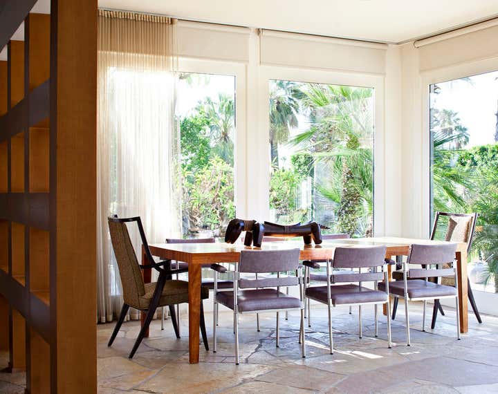 This is a single-family home located in the Old Las Palmas neighborhood of Palm Springs, CA. Built in 1947, Bradley Bayou reinvented the 3,500 square feet home into the desert oasis it is today. He replaced old, water-damaged glass windows and sliding doors with low-e dual-paned glass for greater energy efficiency. In order to take advantage of the view of the pool and the famous San Jacinto mountain range, he opened up the back of the house completely.