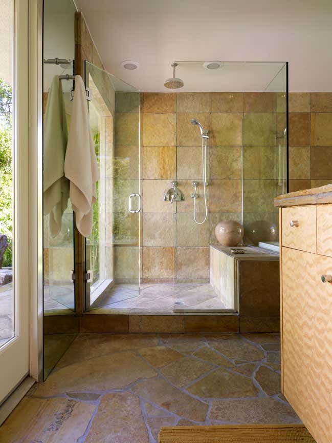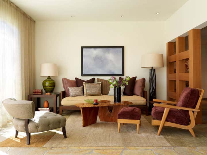 Bradley chose a palette of desert colors to compliment the majestic mountain views and blur the distinction between the interior and exterior living spaces. The same stone is used for the interior floors and the outside patios, perfect for a Californian lifestyle and dripping bathing suits. Embracing the area’s climate, Bradley included sustainable greenery like bamboo and succulents with citrus and palm trees for a classic “Palm Springs” feel. His furnishings embody his perfect mix of function and form, celebrating his World Modern style.