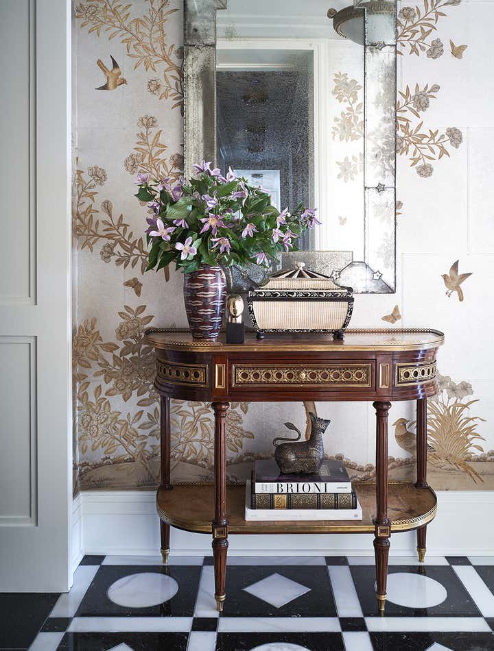 PROJECT: Contemporary styling from the early 2000's dated this apartment, so we were hired to design & remodel it to its pre-war styling with classic design cues and detailing. All new moldings, updated stone and tiling, new kitchens and baths, and of course a fresh palette & tailored furnishings made this Palmolive building luxury condo remodel a beauty. INSPIRATION: Create a home that's dressy enough to entertain Gatsby but still feels fresh, not heavy. Sheen is the story - gilded details and hand painted Gracie wallpaper sets the tone as an elegant luxury affair but pops of color make sure it feels fresh. THE CLIENT: She's loves everything refined & tailored. He loves her dearly and bought this pied-a-terre as a love gift, trusting her style & our designs to make it gorgeous. Together they live life to the fullest between Chicago and Florida.