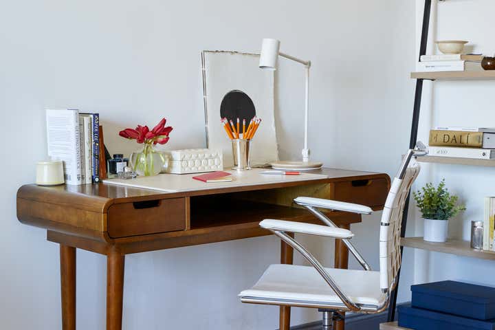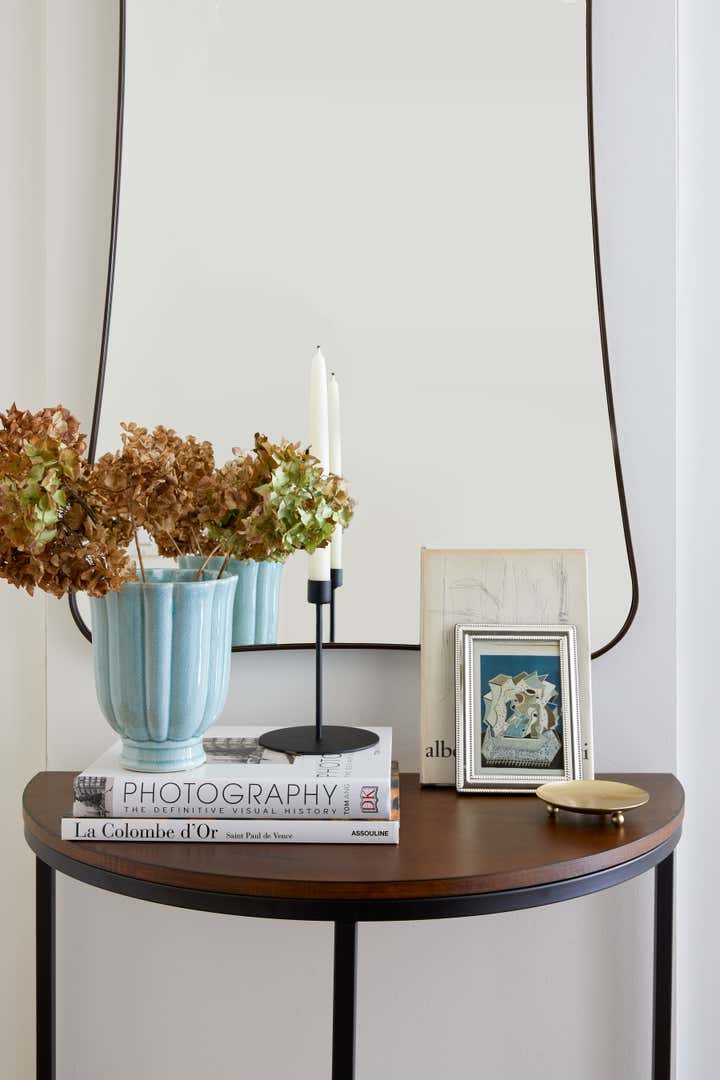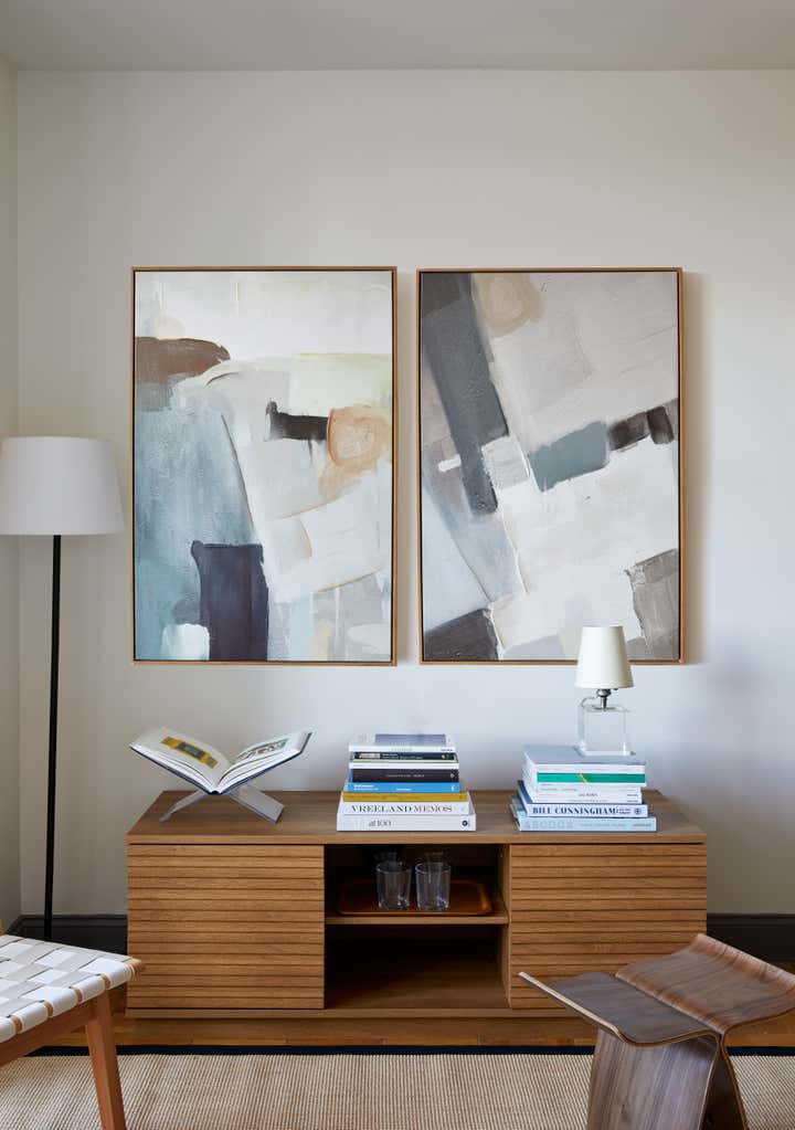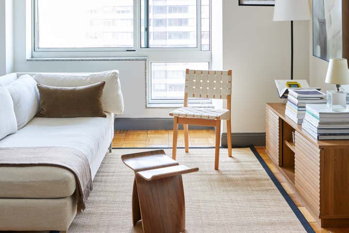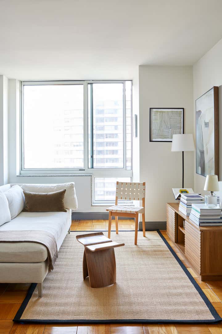 When Covid-19 hit NYC in March of 2019, this client, a 20-something in the world of Politics, needed to quickly transform his UES Bachelor Pad into a zen place to both live and work. With a tight timeline and a color palette of whites and browns, we used a mixture of high end and "off the shelf" pieces to create a functional and chic studio.