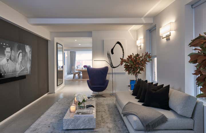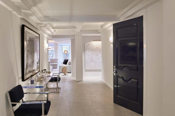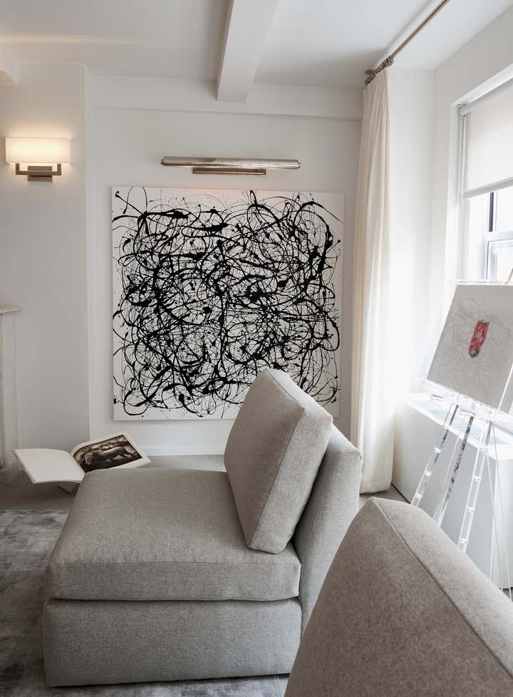 The grace and sophistication of character makes the spacious townhouse feel luxurious and elegant. The layers of texture come from the sheen and soft glow of the juxtaposition of polished and tailored finishes in the glass, lacquer and chrome. The furniture silhouettes are slender and sophisticated for ultimate comfort and luxury. Sheer Belgian linen drapes loosely filtering the light from Park Avenue. Art and accessories have been carefully selected to add depth to the thoughtful aesthetic adding sophisticated layer to the narrative.