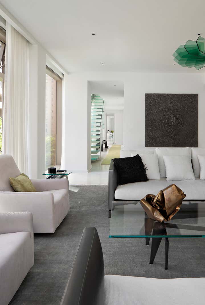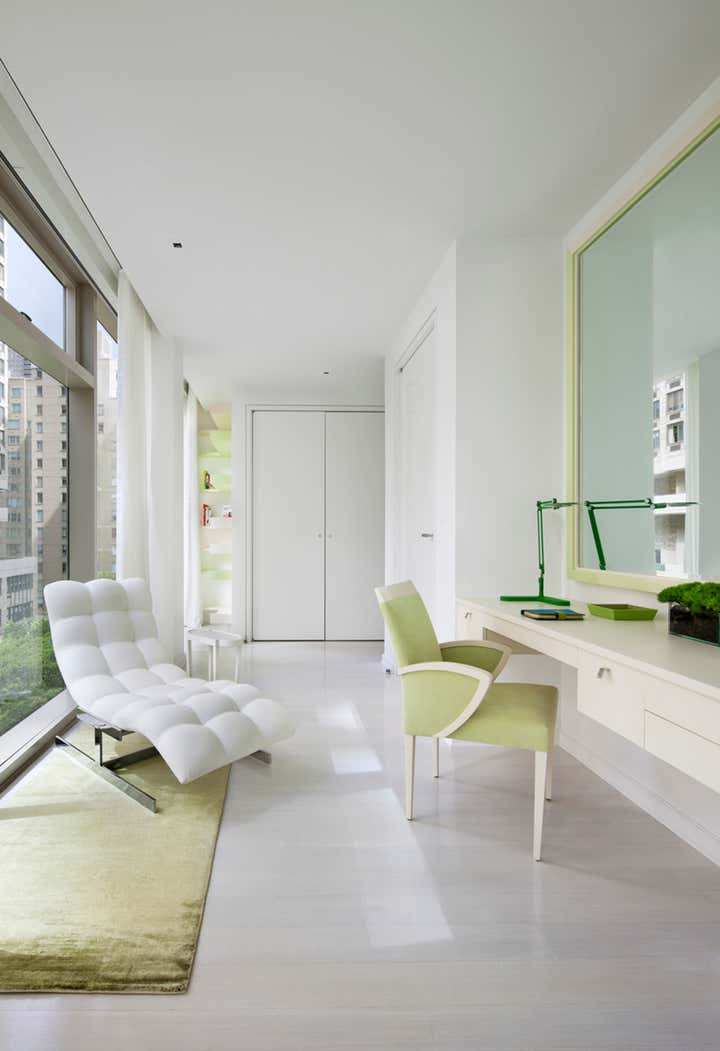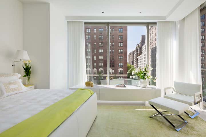 This brand new duplex unit with great view of Park Avenue needed a total overhaul to suit the lifestyle of the couple that needed Jennifer Post’s expertise to bring its unusual footprint - slender and very long with all exterior walls floor to ceiling glass. Whereas lack of light was hardly a concern, privacy most certainly was. The clients gave her a free rein to turn the apartment into an elegant gem. Jennifer took advantage of the northwest corner spaces being the grandest in the apartment with their dual exposures and turn them into living room and, upstairs, master suite. The dominant theme for the apartment was the whites cloaking the apartment and softening the natural light. Vibrant details in the furnishings punctuate the pristine expanses, giving the apartment a chic sense of spirit with a lively mix of custom silk rugs and contemporary furnishings and one of a kind period lighting fixtures.