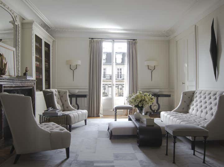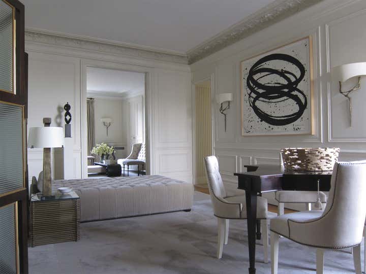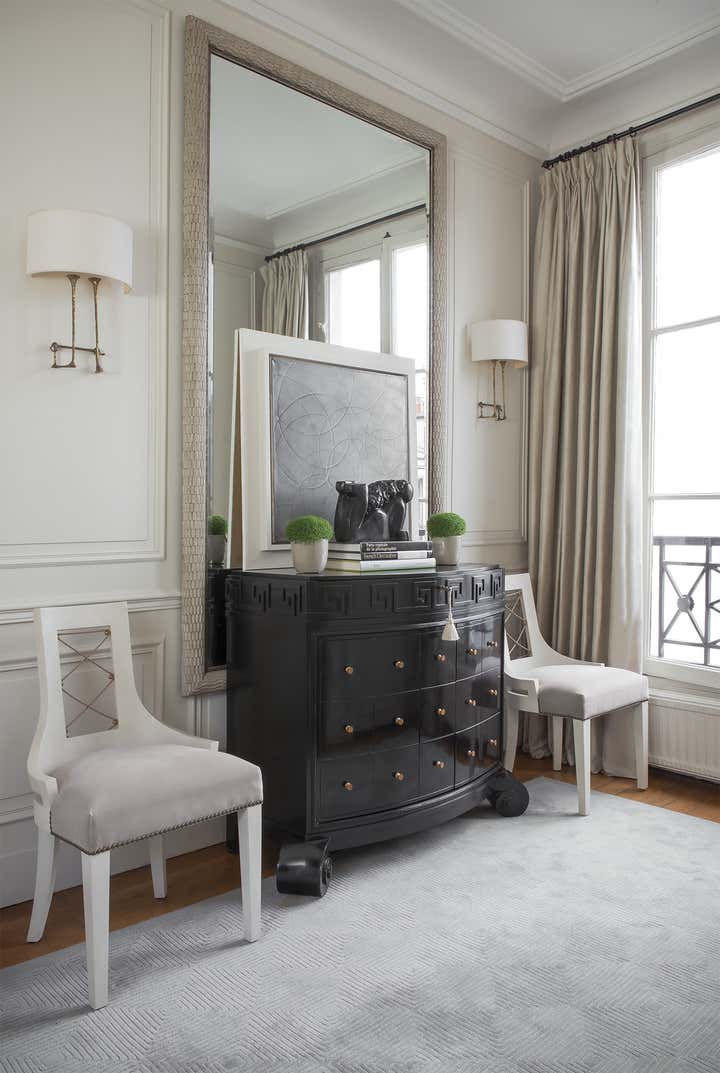 Situated on the Left Bank of Paris, this apartment on the prestigious Boulevard St. Germain offered the opportunity to restore the Haussmann architectural vocabulary that had long been lost. This thoughtful renovation that mixed this Parisian style residence with Pheasant’s love of serene modern design produced a timeless atmosphere that speaks to his past/present signature. The neutral shades of limestone, grey slate and black iron that envelop the exterior facades of Paris streets were brought inside to inform the elegant palette.
