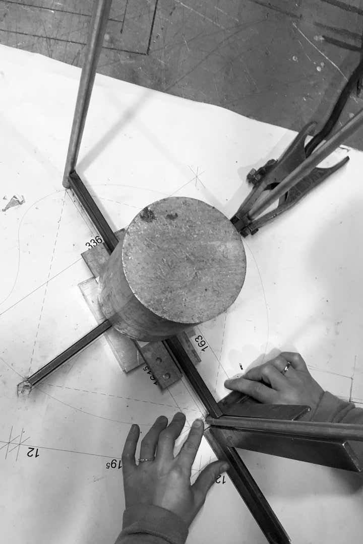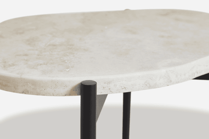 *Material: Italian travertine grey / ivory, steel black powder coated