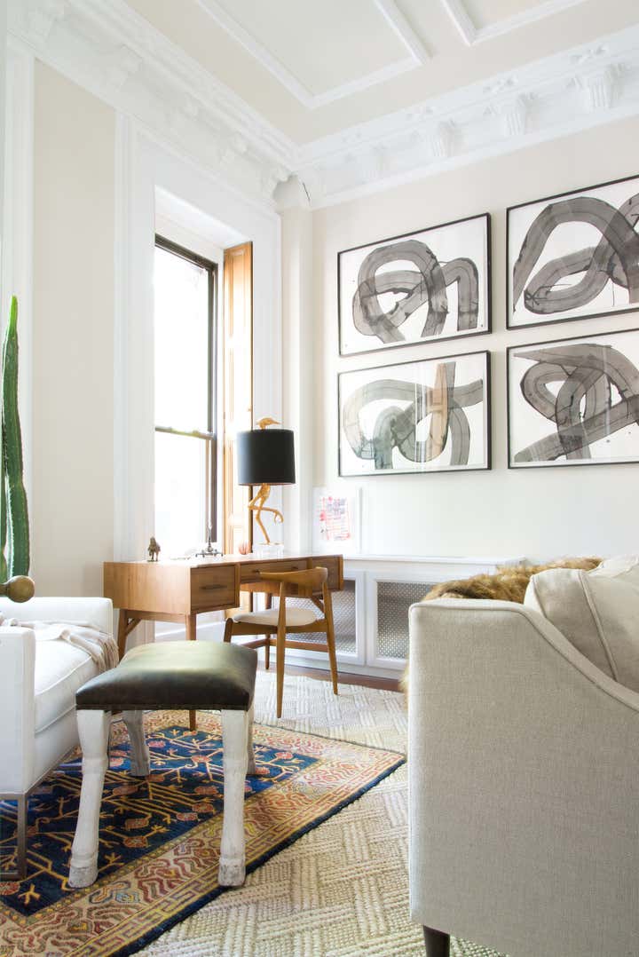The home embodies my design style, which I call "eclectic layering," which combines high-end and low-end items in a layout that emphasizes coziness over all else. I love blending many unique items -- fixtures, upholstery, art, rugs, antiques -- to create a warm and welcoming space.