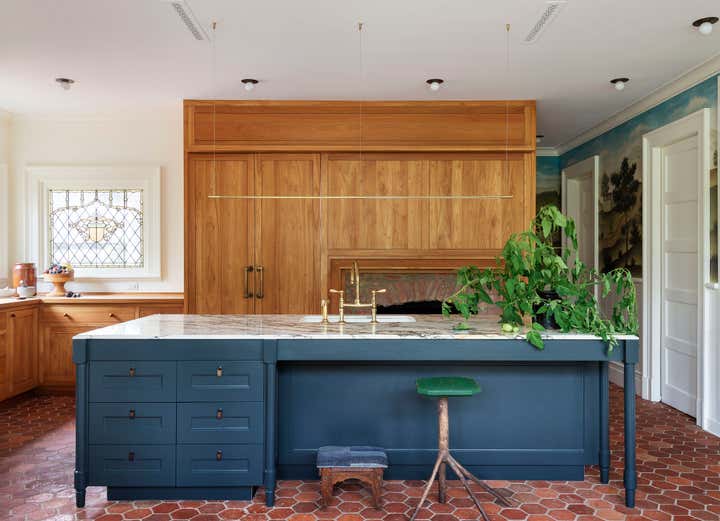 The Prospect Park South House sits proudly on a 13,000sf lot in the exquisite Ditmas Park neighborhood. The Colonial Revival home - replete with original details - was the canvas for Workstead's gut renovation. The approach was to stitch a distinct, modern spirit throughout the home, while channeling and preserving its historic elements. Ditmas Park is an oasis within the bustling city. Upon setting foot in the neighborhood, old growth trees and detached homes give the sense that there's suddenly room to breath. The design honors this sense of expanse, while playing off the whimsy of the home's original character. Substantial plaster coves, stained glass windows and casing, fireplaces, and mantels were preserved to support a meandering floor plan that lends itself to the architecture's stately identity.