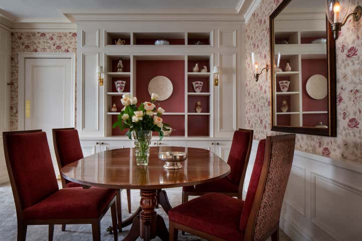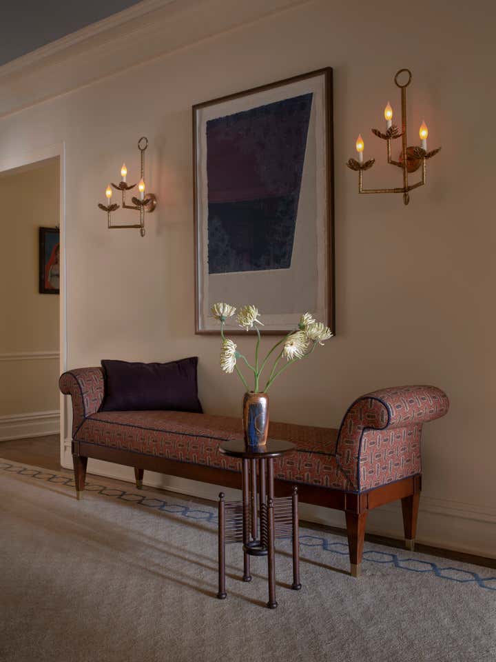 With the children grown and having moved on to create their own lives, this couple was ready to redecorate the public and private rooms. With a penchant for traditional design and for jewel tones, which informed our palette. And while virtually all the furniture and furnishings–new, vintage, and antique–were fresh acquisitions for this apartment, we chose pieces that echo our clients’ taste for classical aesthetics.