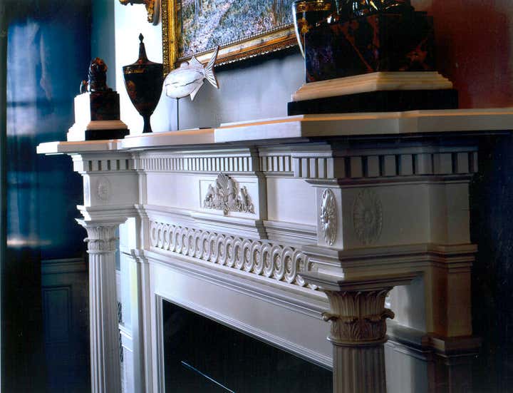 The interiors incorporate Greek Revival–inspired plaster moldings, millwork, mantelpieces, and furnishings. The beautiful interiors and gardens were created, respectively, by Mariette Gomez of Gomez Associates and Deborah Nevins of Deborah Nevins Associates Inc.
