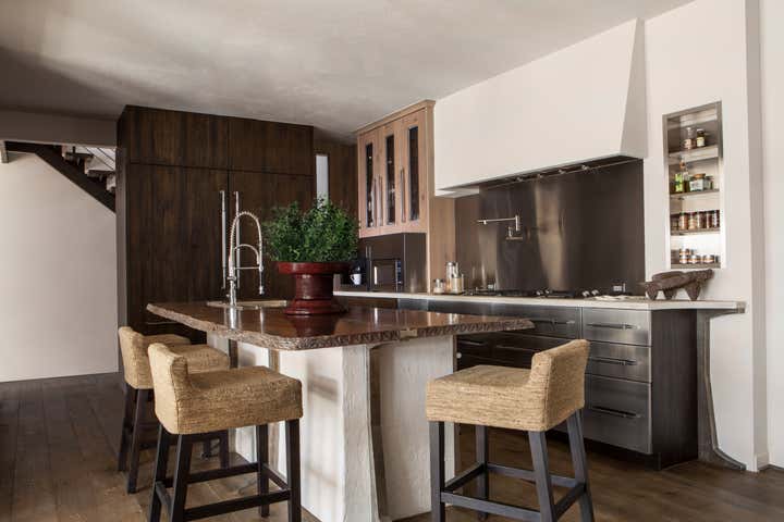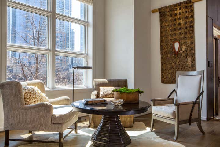 A classic row house on Chicago’s riverfront undergoes a gut renovation – taking it’s cues from the surrounding industrial setting. The interiors are imbued with dramatic architectural details and eclectic furnishings. Ethnic patterns and an impressive collection of art and artifacts nod to the homeowners’ adventurous spirit.