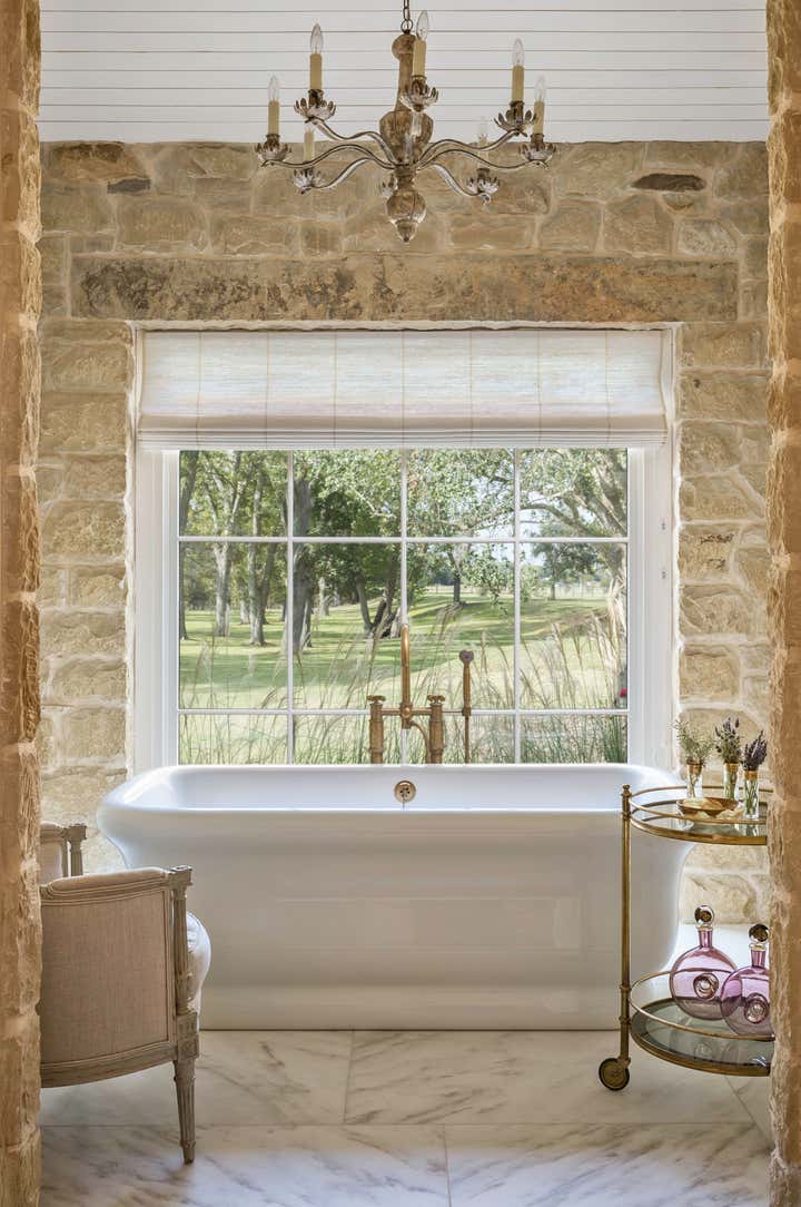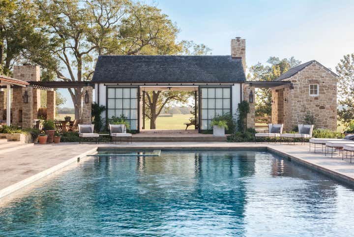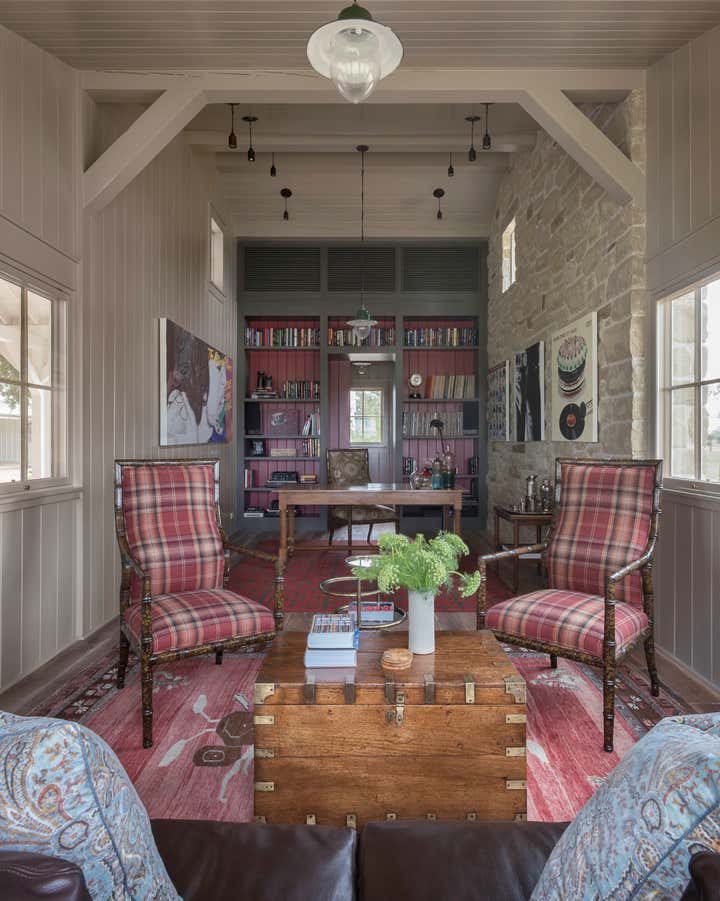 Built among the pecan trees and wildflowers that grow on the banks of the Colorado River outside of Houston, this project was conceived as a modern pastoral home for a young family. Stellar architecture from Michael G. Imber, Architects fully realized the aesthetic tradition of the rural South in the 1920s. Among the many details are multiple exterior brick porches, bright double-hung windows that stretch low to the ground, and unique transoms above the many French doors. The interior furnishings are meant to be mix of periods that evoke a comfortable, inviting environment that is both beautiful and durable enough for small children.
