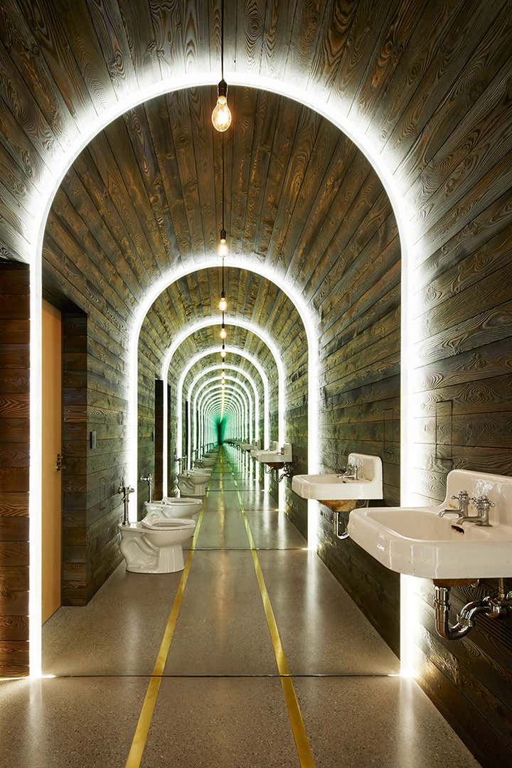 Riverbend’s material palette combines cedar and glazing wrapped in a steel plate shell. The large expanses of cedar siding are interrupted with vertical cedar fins that add texture and shadows, which change throughout the day. Over time, the steel will develop a patina; ultimately the building will exchange its black shell for a rusty one, further integrating into the site.