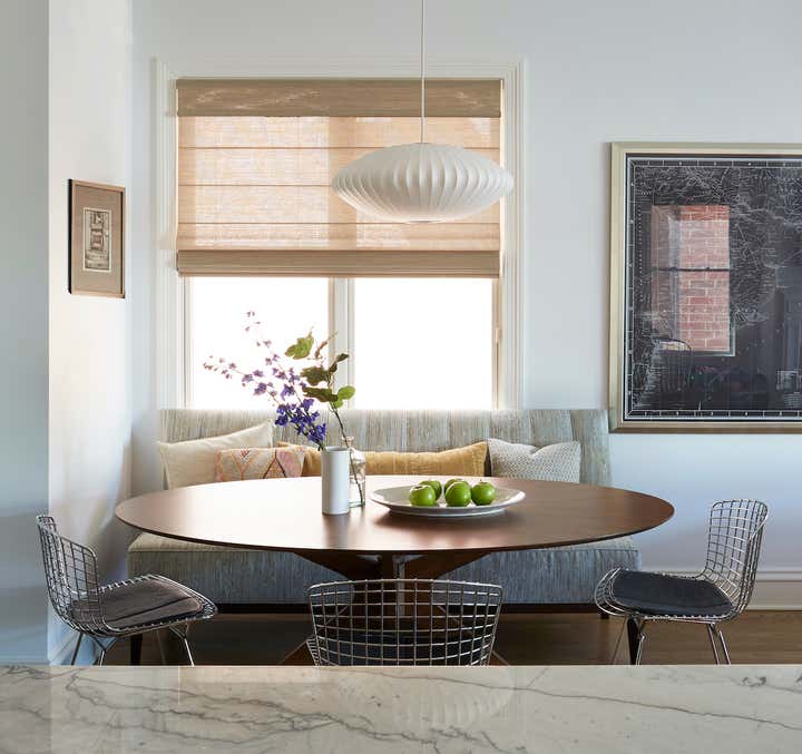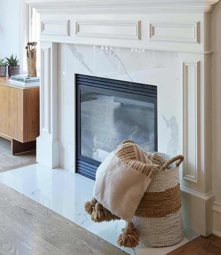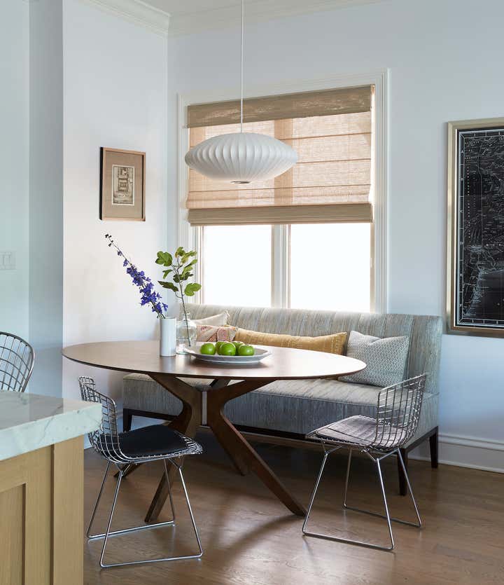 This young couple with 2 daughters moved from a condo in the West Loop to a 3000 sf single-family home in Logan Square. The renovation focused on the 1st floor and included remodeling the kitchen, existing hardwood floors were stained, fireplace was reworked, powder room completely redone, new foyer tile, new stair spindles, paint throughout, and kitchen breakfast nook furnishings. There was a small bar area that opened to the dining room was closed off to make the walk-in pantry as well.