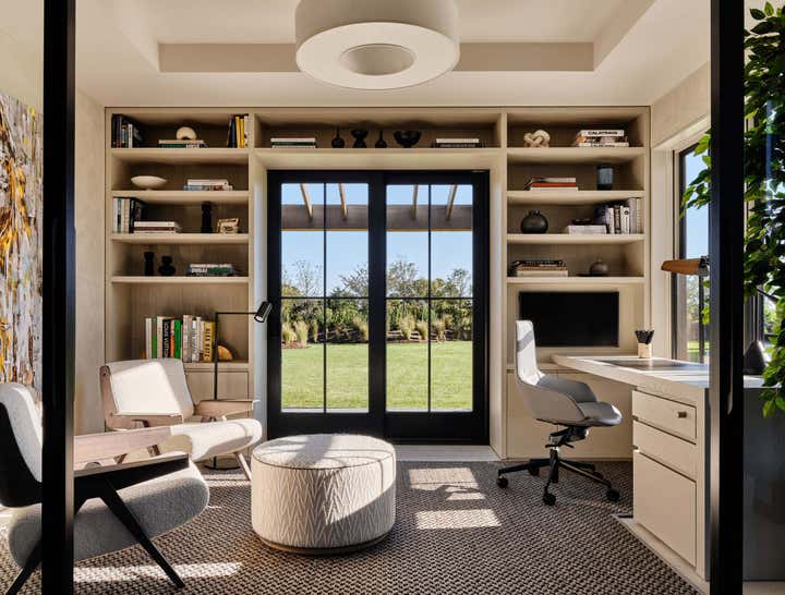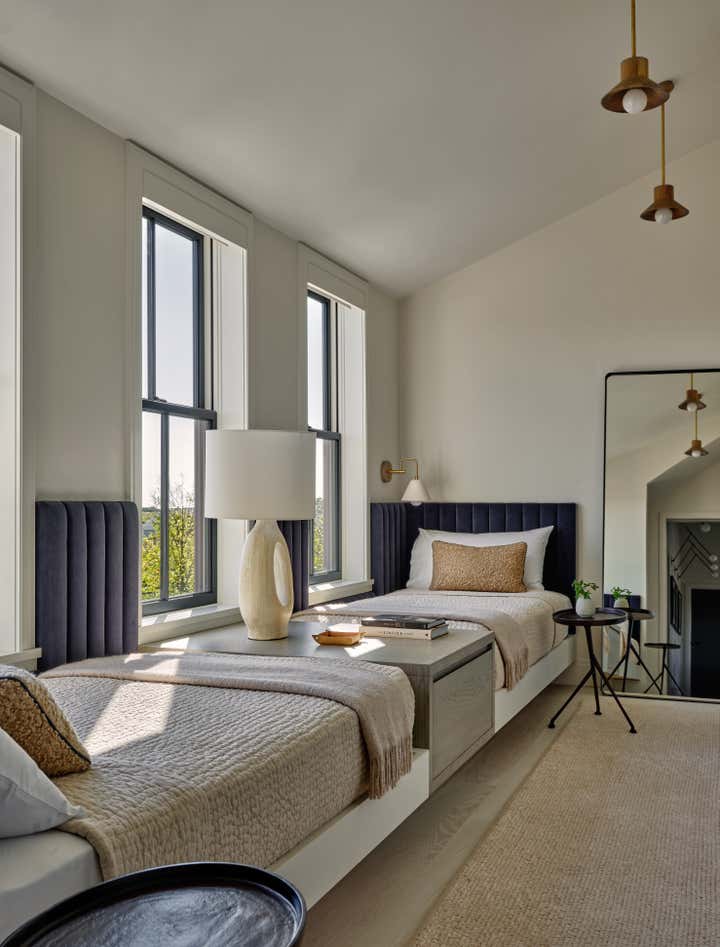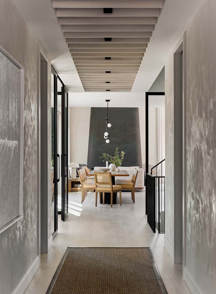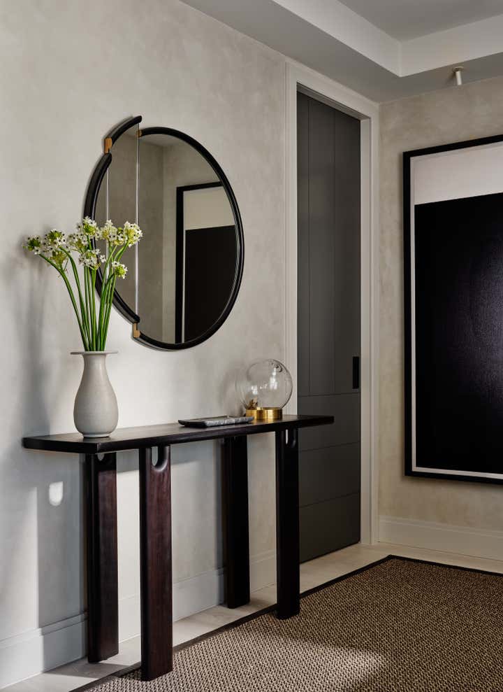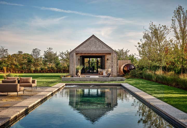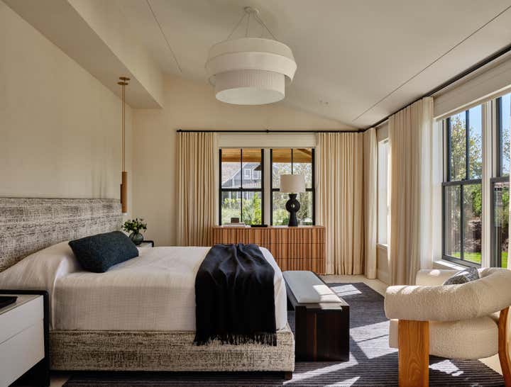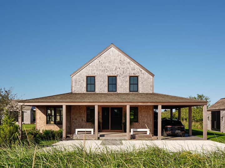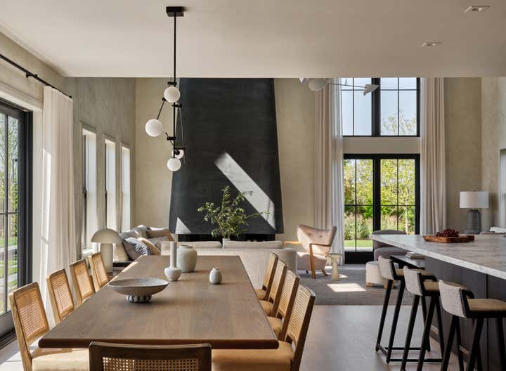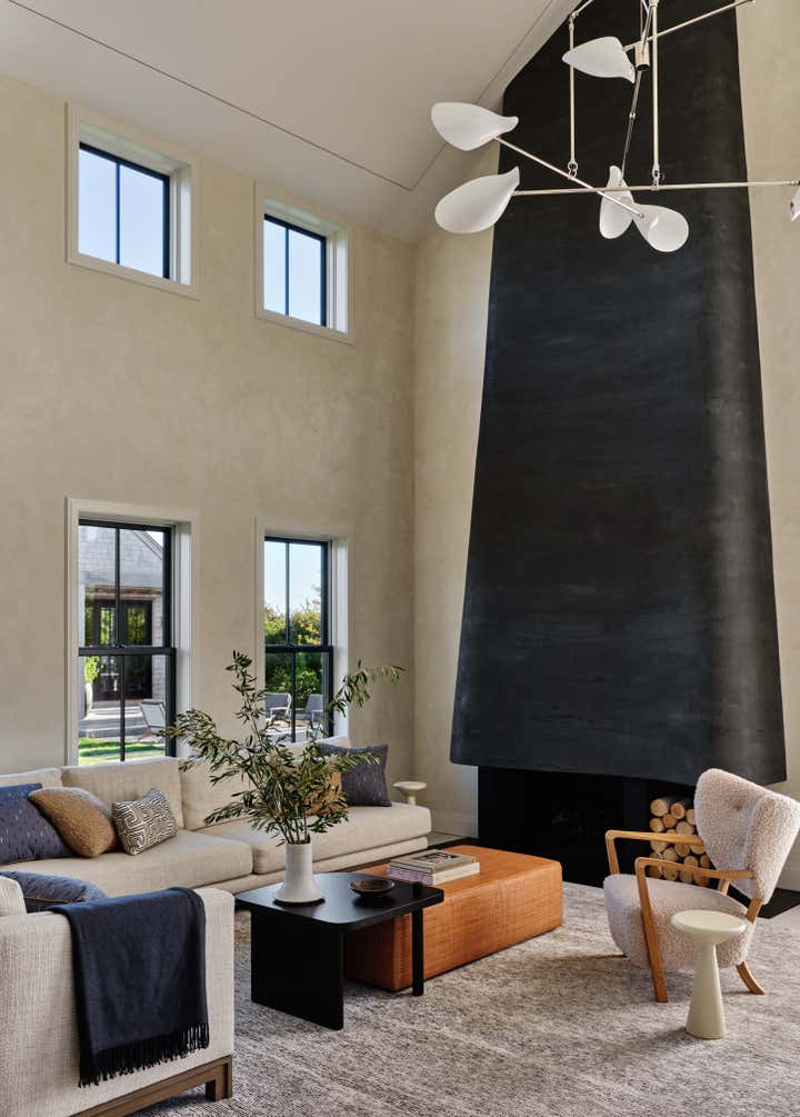 Our Sconset Escape is a ground-up holiday home rooted in texture, tonality, and material shifts. Composed of a main house, pool, garage studio, and wellness wing, the space easily accommodates guests and promotes family gatherings. Plastered walls and a dramatic charcoal fireplace in the living room create a seductive warmth, bathed in Nantucket sunshine, while rich marble and ebonized oak coat the kitchen in dynamic natural materials. Furnishings carry a modern, coastal color story through the home, with sandy neutrals offset by deep navy and slate grey.