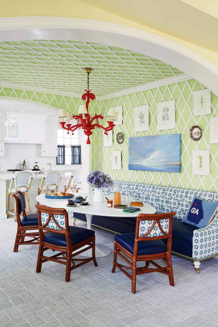 Apple green walls and painted chandeliers, whitewashed brick and whiter-still stucco— this isn’t garden-variety Sea Island. The home’s setting on an historic isle off the coast of Georgia is perhaps best known for its preeminent resort, The Cloister, and its long history as a five-star, marsh-cloaked escape for a who’s who of 20th-century notables, from sitting presidents to business tycoons. This Sea Island home incorporates classically Southern decorating elements and Mediterranean touches typifying Sea Island-style with plenty of bright color and bold accents with a sense of history turned this home into a colorful, kid-friendly space that’s as relaxed as it is beautifully refined.