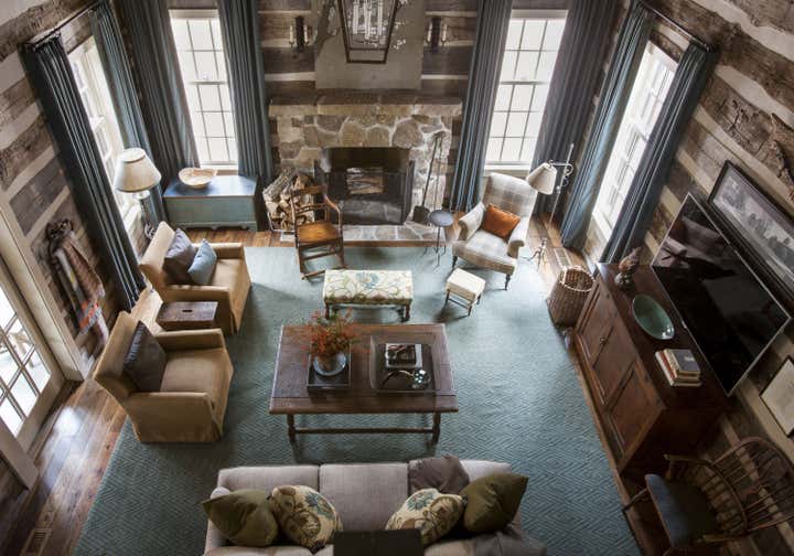 Two 1840s log cabins combine to create a rustic dreamy mountain retreat.