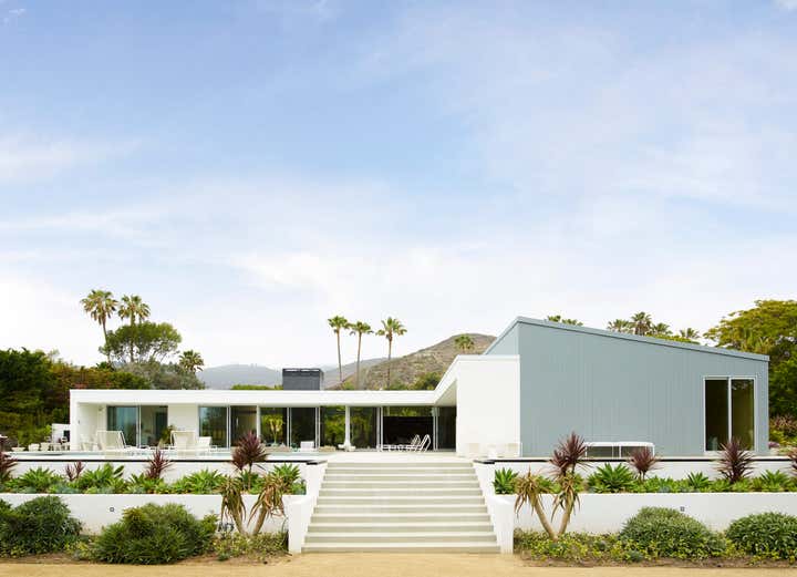 Boyd+Broughton have created Shed House, a 6,000 s.f. Modernist home in Malibu on PCH. Michael Boyd and Laurel Broughton, designers, use a simple but magnificently-scaled T-plan to provide elegance, low-key luxe, privacy, and indoor/outdoor living in the tradition of post-war Southern California architecture and The Case Study Program.