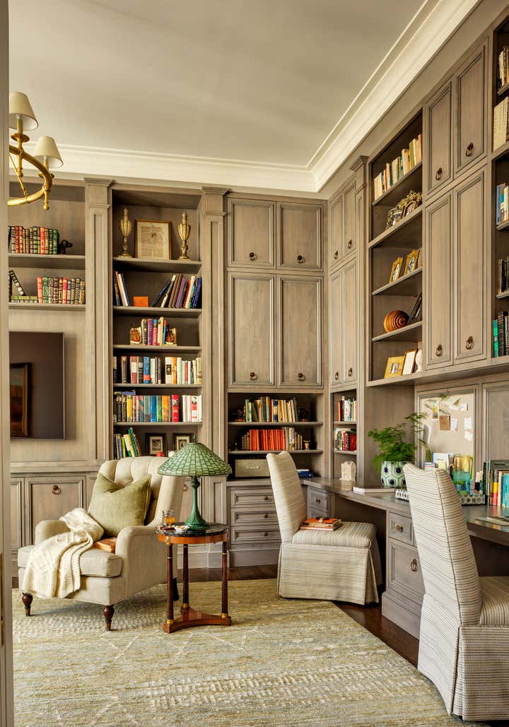 The essence of Annapolis and romance of the sea is reinforced with maritime details throughout the home. Upon entry, visitors are met with a handcrafted compass inlay indicating true north while the extensive millwork—curved beadboard ceilings and built-in cabinetry and bookcases—evoke the character of shipbuilding. Upstairs, the children’s bunk room features boat-themed furnishings and beds complete with portholes. Floor-to-ceiling windows and doors offer a visual rhythm to the length of waterfront elevation, frame the idyllic views, and render a magical light-filled haven for the owners.