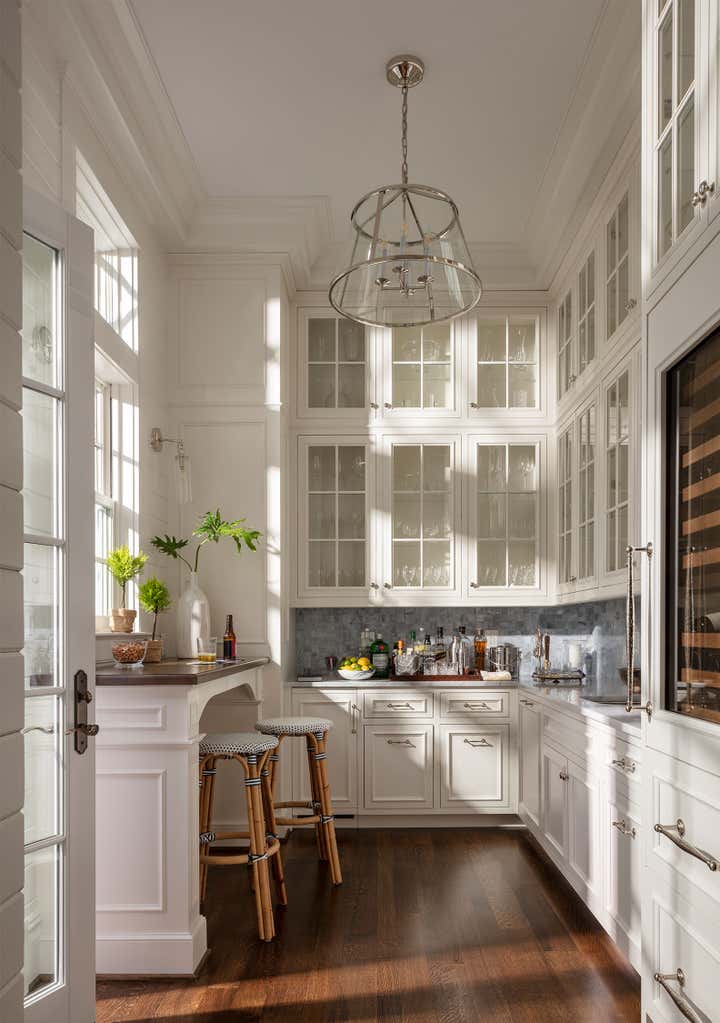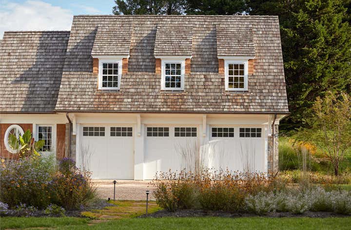 Sited on Annapolis's South River, this classical shingle-style residence provides two well-balanced traditional elevations. The gambrel roofs, diagonal divided lites in the windows, capped oval windows, and a large eyebrow dormer create a delightful presence from the street and from the water. Luxe finishes including a wood shake roof, shingle walls, and copper accents exude a sense of elegance, which carries into the interior.