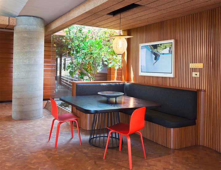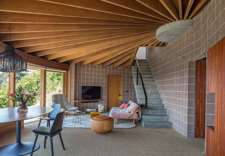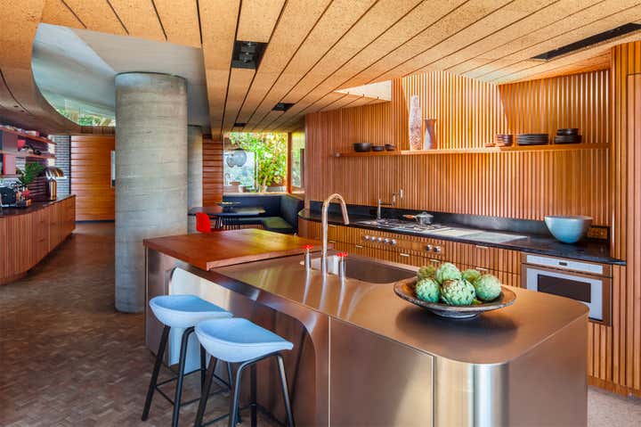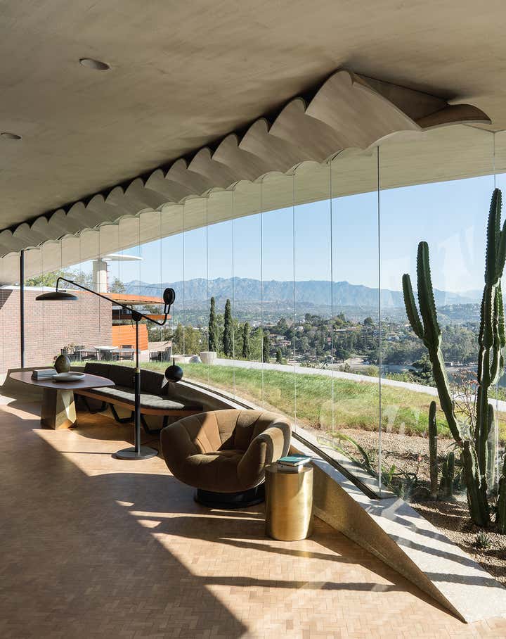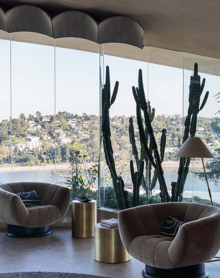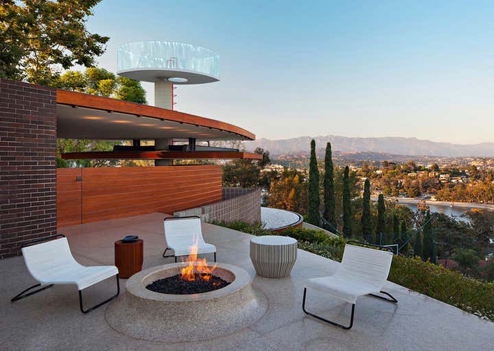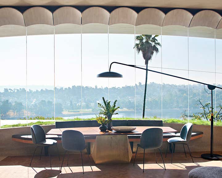 John Lautner's 1957 biomorphic masterpiece sits high in the hills overlooking the Silverlake Reservoir in Los Angeles. This sprawling innovative home was the first of many technologically advanced design elements including the first infinity edge pool, automatic and retractable walls and ceilings, home automation, and passive heating, all driven by the inventor Kenneth Reiner. This historic home was sensitively restored and updated in collaboration with Bestor Architects for the CEO of BEATS, Luke Wood, and his young family.