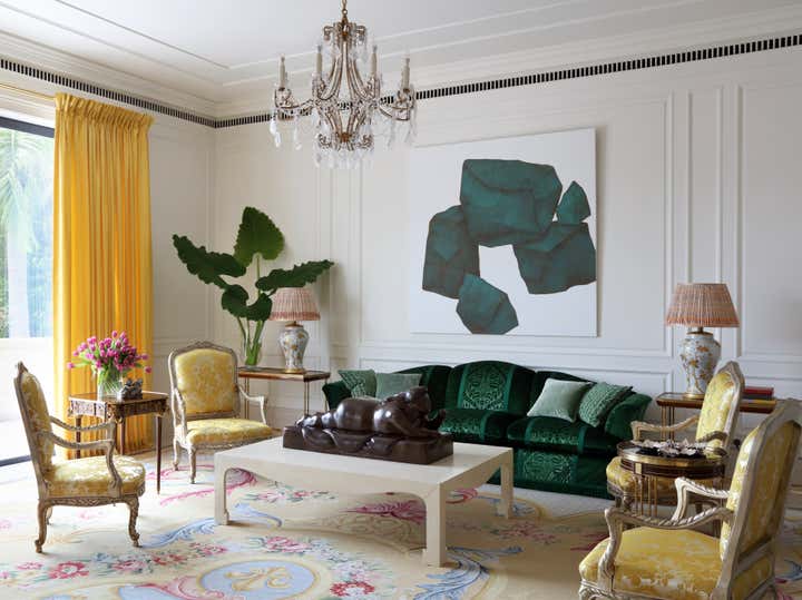 Inspired by 18th-century French châteaux and their early-20th-century American interpretations by such architects as Horace Trumbauer and John Russell Pope, this house in the Botanic Garden District of Singapore has a dramatic domed oval staircase that unites all three floors. The house adapts to the tropical climate with the addition of a conservatory and garden loggia. The Rothschild taste and Maison Jansen influenced the interiors, which combine French and English furniture with a collection of modern art.