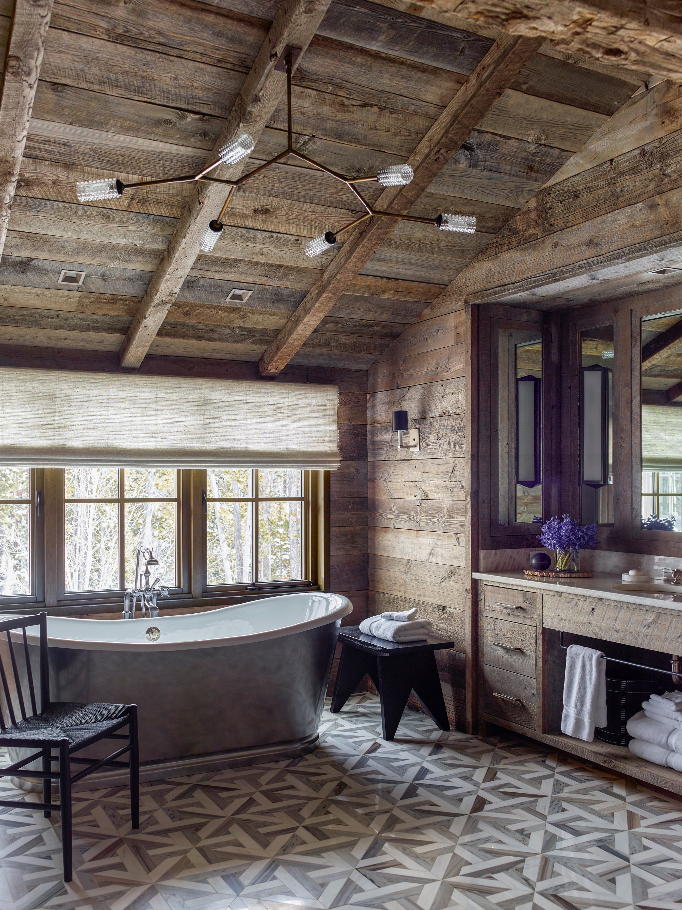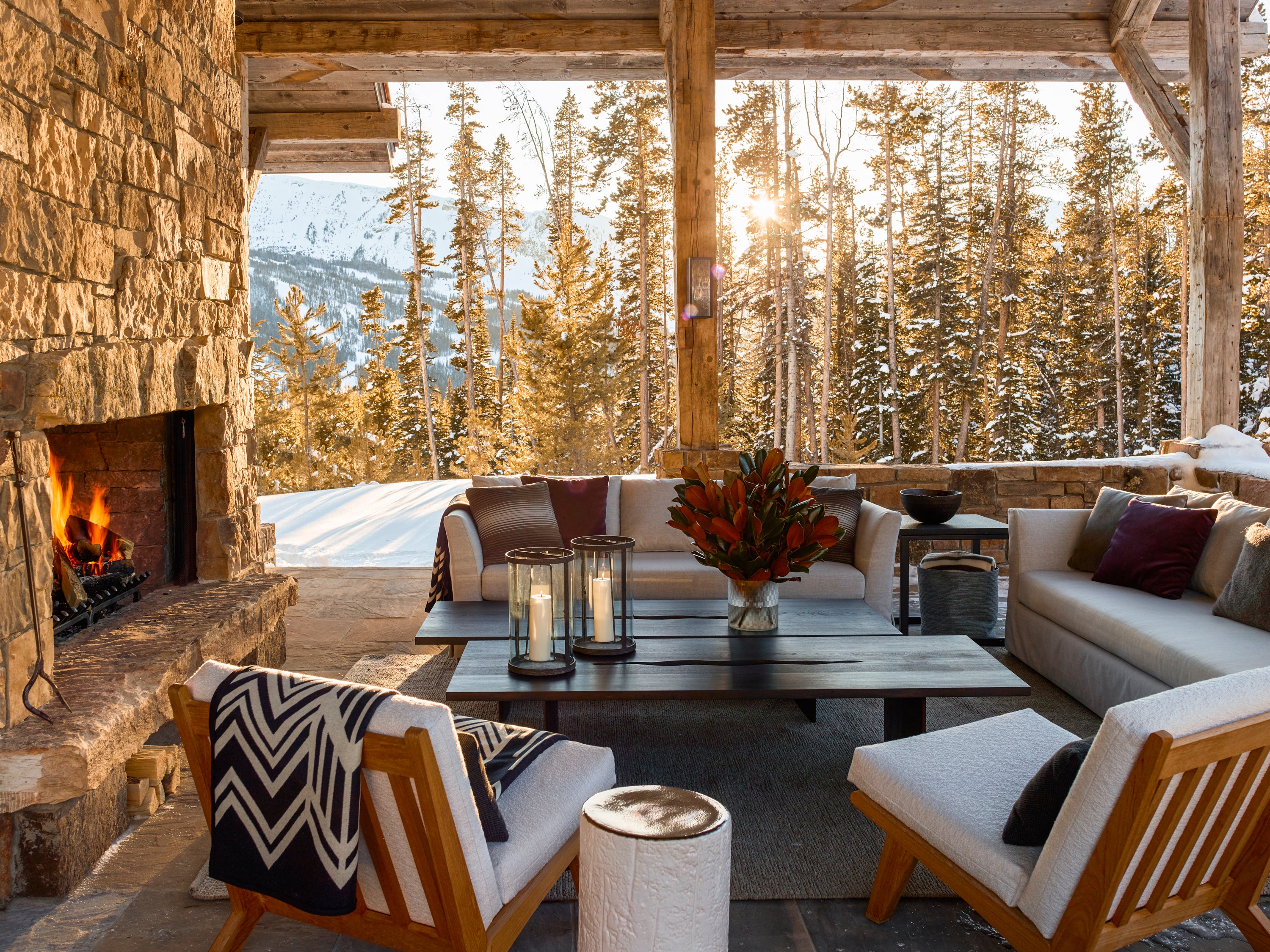 A family's winter retreat nestled in Montana's snowy peaks