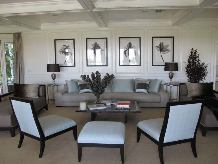 A large light and airy Estate in Southern California. All new furnishings, fabrics, and finishes, with a sprinkling of modern abstract art and vintage fashion photography from the estate of Milton Greene and Bernard of Hollywood. A nod to Art Deco was incorporated using special pieces from Bagues, as well as other period accessories.