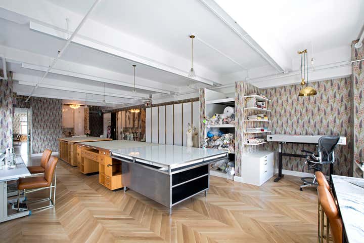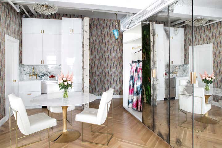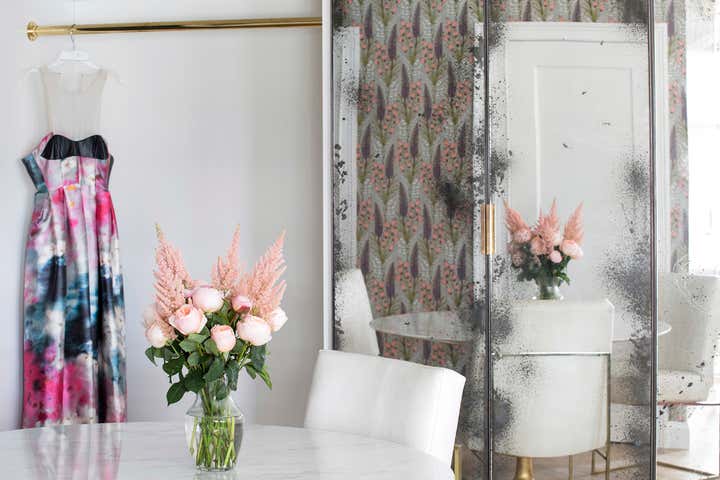 We created a more intimate atelier setting for our clients wedding and couture fashion label. We envisioned a romantic work space that exuded feminine glamour reflective of the designers work with traditional lace and florals but with fresh and modern elements.