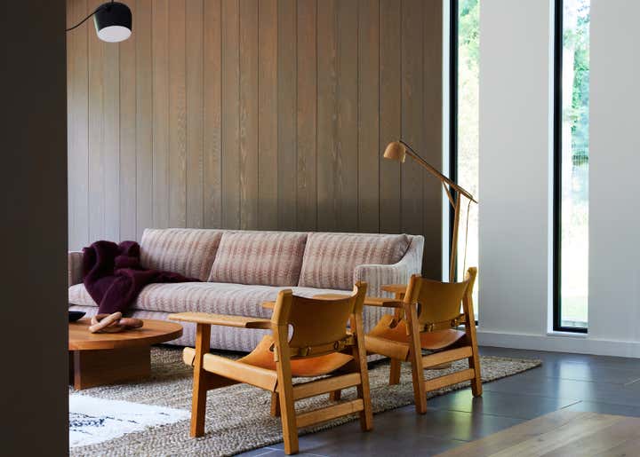 A modern bohemian beach retreat for a vibrant family. Drawing on the home's strong indoor/outdoor connection, JPL introduced an earth-tone palette layered with natural fibers, chunky textures and vintage furniture pieces to create a relaxing escape from the city bustle.