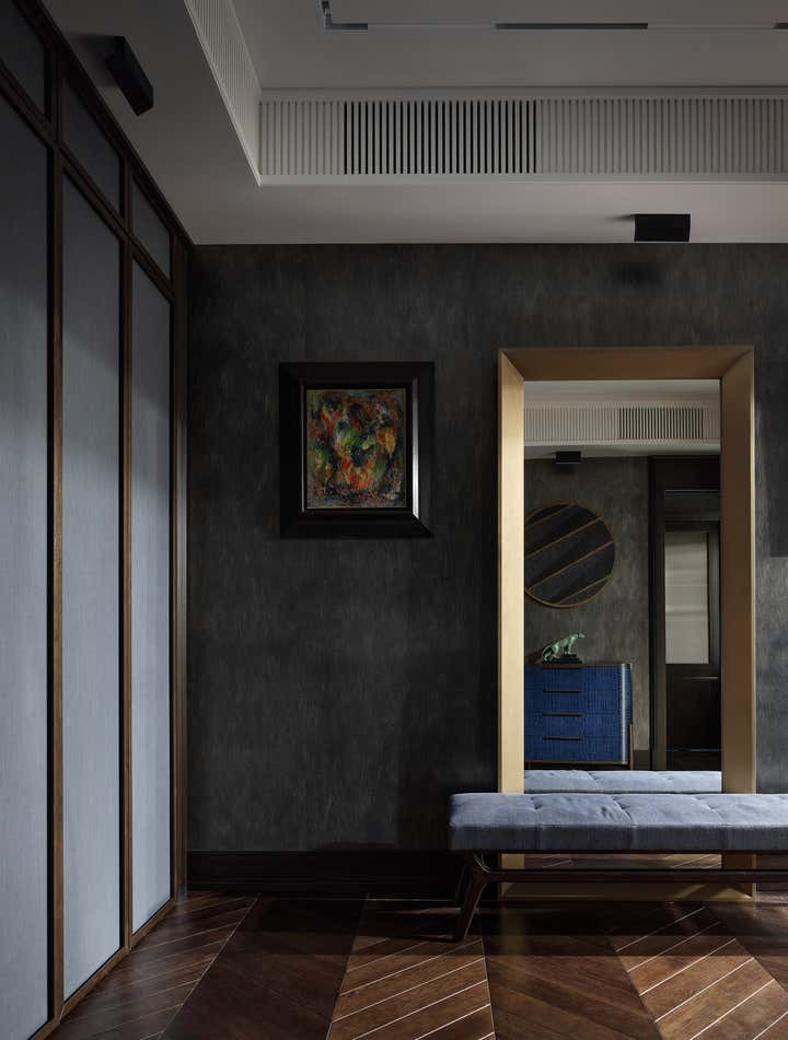 While planning out the space the main objective was to incorporate all the collection items into the overall ensemble, while creating the atmosphere of a house with a history. Painting framed in unusual framework stress the importance of the space where every element is an art object.